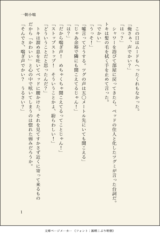 小咄の意味を調べたら「これだな」って思いました。今日(コンニチ)もときつぐです。