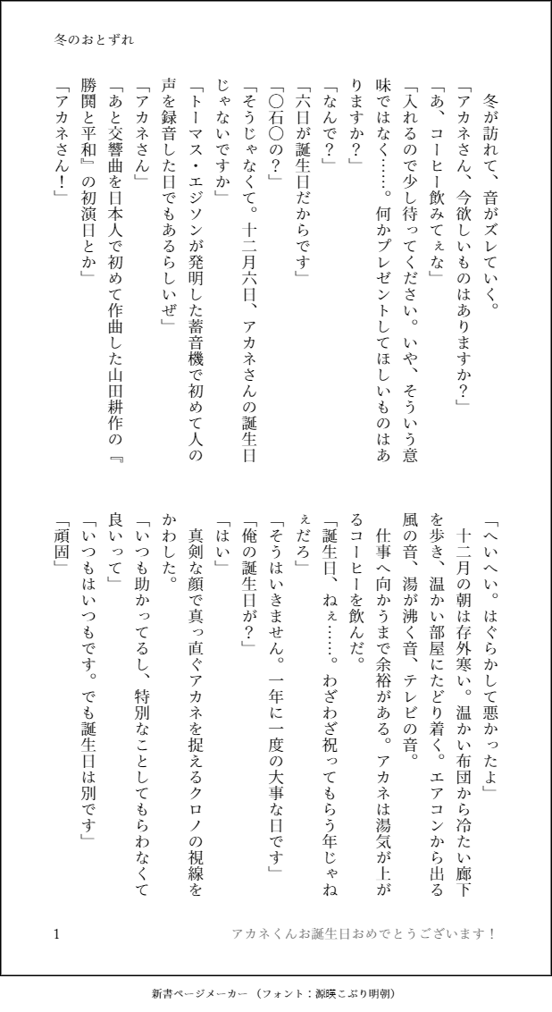 アカネくんハッピーバースデー!!!!!!!!!!!遅刻誕生日SSです。くろ→←←あか(黒茜)気味の付き合ってないくろあかです。公式SSが神すぎて一度無に帰したのですが書きたかったので書きました。(結局綴るんか~~い)