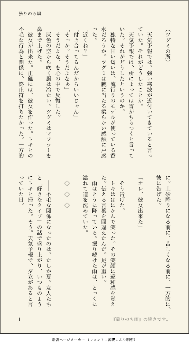 以前投稿した『曇りのち雨』の続きのときつぐ(トキツグ)。モブ女子生徒いるので注意してください。不毛に決着つけたいので次で終わりたいです。