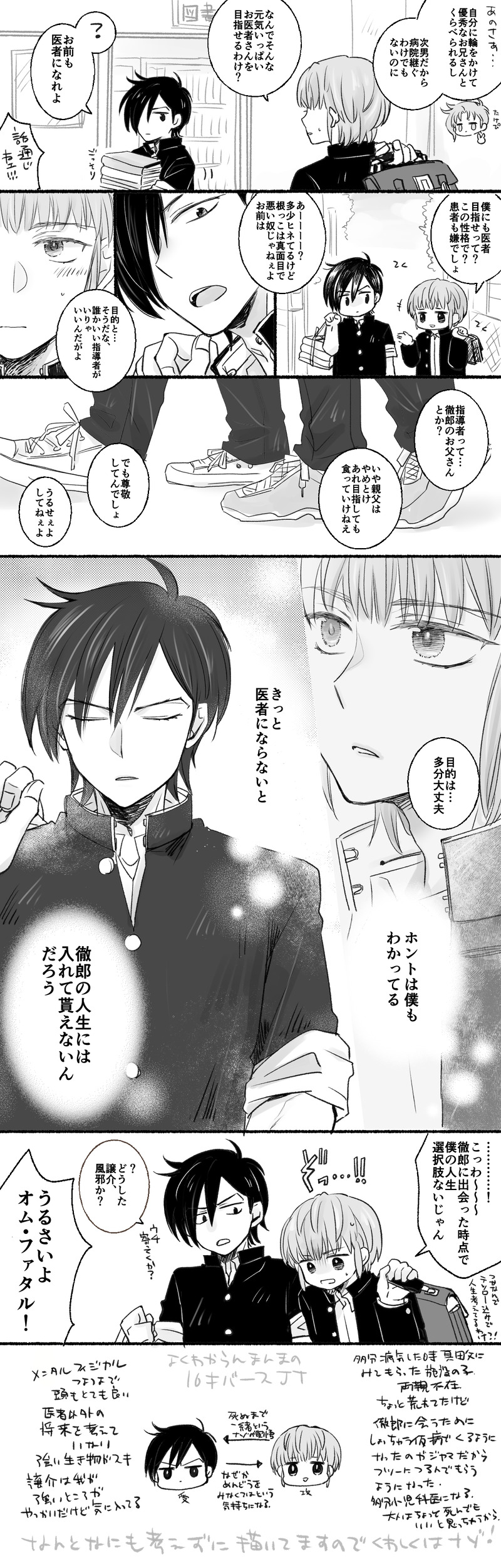 これそのうちテツはKAZUYAに夢中になる期間があり譲介は拗ね拗ねで一人グループの元に行くのできっとずっと一緒というわけではないのだろうな…??でもこの頃はずっと一緒だと疑っていない譲介くんです。哀れなり。