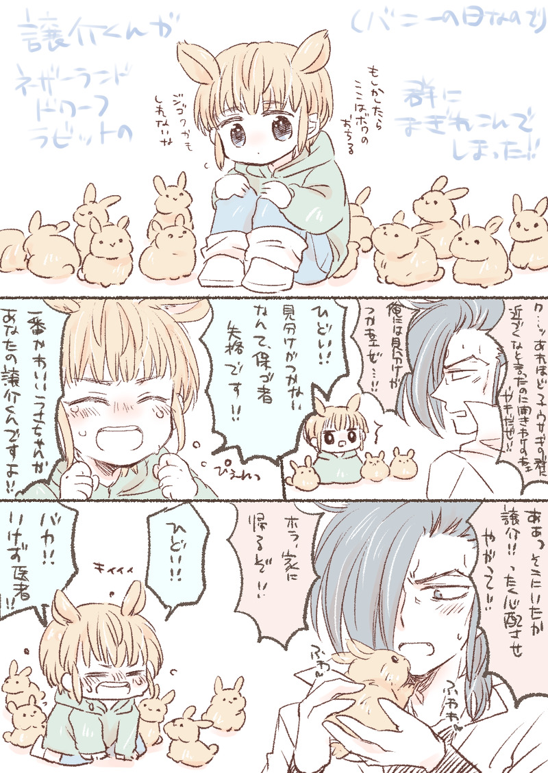 うさちゃんの群れに紛れ込んでしまった譲介くんと闇医者漫画です。
