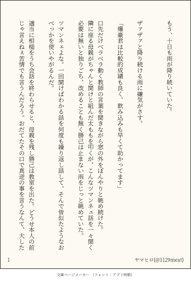 遠野瀬/やまひろ☆quiet followDONEまた懲りずに書いたのでここでも宣伝的に🙏もう十日間も雨が降り続けていた話本編はこちら#pixiv https://www.pixiv.net/novel/show.php?id=13576925 show all(+4 images) Tap to full screen (size:630x928).Repost is prohibited Let's send reactions! freqpopularsnackothersPayment processing Replies from the creator Follow creator you care about!☆quiet follow 遠野瀬/やまひろPAST絵本風MTA(創作キャラ)ひとりぼっちで見る空はとても悲しいものでしたでも、そこに君がいて、初めてひとりじゃないと思えたのです。「ここにいるよ、ぼくがいるよ」2人で見上げた空は、広くてあたたかなものでした。 4 遠野瀬/やまひろDONEお久しぶりです💪年末〜年始にかけて身内アンソロの作業をしていたりしてだいぶご無沙汰でした現在は3月にあるオンイベに向けて原稿作業中です。初めての本!とても楽しみ!頑張ります! 9 遠野瀬/やまひろDONEイベントに出たりグッズを作ったりして生きてました🌸🌸次は1月のイベントか3月のイベントに出陣予定です👏✨✨わーい! 13 遠野瀬/やまひろDONEオンラインイベントで配布する用の無料ネットプリントですー!!初めて二次創作の漫画を描ききりましたヽ(;▽;)ノ大変だけど楽しかった…っ!次はちゃんと製本した漫画を作ってみたい所存! 12 遠野瀬/やまひろDONEココ最近描いてた物を一気に放出👏有難いことに友人やフォロワさんに励まされたので前にあげた漫画をふたたび頑張ってみることにしました🙏 なので一旦下げてます。見てくれてありがとうございました🌸🌸🌸 5 遠野瀬/やまひろDONE土曜更新の本誌で狂わされてなんかよく分からないネプリを作ってたのでこちらにも 3 related works きくちゃんDOODLEサタン様犬好きかと思いきやロクサーンみたいなパターンもあるのでやっぱ人外思考なのかな~ ちゃづDONE描いたやつその1※茨あん、ジュンあん 17 わたさくDOODLE べこDOODLEピンク色のバレンタインなヨウグズ🍫 nnnnnnoodderaDONE【腐向け】チャバが酔ってハ崎さんに甘えてる漫画。ハ崎さんがトイレに行くのを我慢していたりする。 4 きくちゃんDOODLEサタン様犬好きかと思いきやロクサーンみたいなパターンもあるのでやっぱ人外思考なのかな~ 2watoyoDOODLE【朝のボールペン落書き】【日楠♀】【先天性女体化】日高先輩×男装後輩サキュバス家系楠ちゃん。海編。本当に気にしてるのは。 ココノカSPOILER幻覚なので全くネタバレではないけど1072話の発言ネタ ちゃづDONE描いたやつその1※茨あん、ジュンあん 17 recommended works 遠野瀬/やまひろMEMO一次創作の紹介的なの 3 posssariDONEタイマン張ったらダチの絵 厄パチDOODLE軽めの異形エックス tamayura830DOODLE※陳情令の温情 と温寧 あの後 の、あくまで妄想です2024年12月16日 16 粘土質DOODLE嘆く悪魔Twitterの方で掲載している、保存して明るさやブリリアンスを調整すると絵が浮かび上がってくる画像の、高画質で調整したバージョンです(ネタバレ⚠︎︎)Twitterだと画質が下がって、見れはするもののノイズが乗ってしまうようなので…… HeeeeewadaDOODLEWarning!!!!!!!! porn, JB22(top) x JV(bottom). If that description made your nose wrinkle, the images are only going to get worse...password question: are u over 18?(yes) lowercases 4 Omori_nana_nijiDONEプール授業みつ2月のノベルティか無配にするやつ⚠️体毛 1ga1ga1gaDOODLE今までのpkmn限定のリクエスト落書き後半全部オオタチのつがいとかの絵です。 61 もっちのお部屋DOODLEサンタ帽かぶってウキウキなもっち。