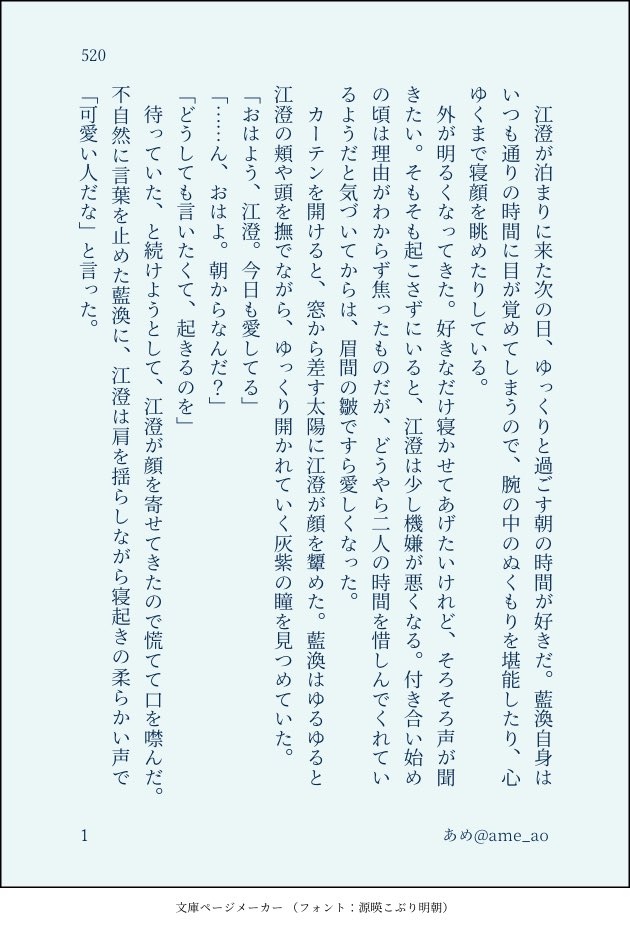 あめの倉庫☆quiet followDONE曦澄520Day企画によせて現代AU「かわいいひと」ゆるせなくなる曦とゆるせる澄の愛情の違いのお話このあとたくさんよしよし(婉曲表現)した show all(+5 images) Tap to full screen (size:630x928).Repost is prohibited Let's send reactions! freqpopularsnackothersPayment processing Replies from the creator Follow creator you care about!☆quiet follow あめの倉庫DONEクリスマス小話「かぞくになろうよ」現代AUです一緒に住むふたり、何度目かのクリスマス 4 あめの倉庫DONE2022曦澄真ん中バースデー企画に参加させて頂きました!お付き合いしたての曦澄のふたり 3 あめの倉庫DONE藍曦臣生日快乐〜! 曦澄ワンドロワンライ藍曦臣BD「ケーキ」現代AUですケーキを作ってもらってウキウキの曦といっぱい祝うつもりの澄のお話 5 あめの倉庫DONE曦澄ワンライ「犬」何度だって巡り会う曦澄のお話現代転生AUですこのあと謝り倒していっぱいよしよししたし、仕事は休みました 5 あめの倉庫DONE笑毒2開催おめでとうございます㊗️現代AU曦澄「いつもの朝に」オンリー合わせにイロモノで恐縮ですが、曦がずっとトイレに行きたい状態なのでトイレ行かない派の方は回避してください🙏残念ながらえっちな描写は一切ないです 5 あめの倉庫DONE曦澄ワンライ「蓮花」付き合いの長い曦澄と早朝の蓮花塢いつしか2人寄り添うのが当たり前になっているといいですね 3 recommended works salmoneyeballsDOODLEEng.ver 4 おかずPROGRESS息子さんのこういうちょっとふてぶてしい格好良さはあるったらある!!1!!(檻をガタガタさせる絵文字)伝言の能力に関してはほんとにロマン優先ですごめんね…しかしこれ背景談話室なんですけど、伝わってます???意外と進捗が息吹き返してきたぞー!やったーー!!落書きもできるかも!!!!いや先に同人誌の原稿目途つけてからですが。流石に。落書き縦漫画のネーム切ってそのままにしてるやつ何とかしたい。 鶏(とり)DOODLE🍔「君も家を飛び出したらどうだい!」アルマシュ megumisuzusDOODLE程光🔞cxslg rkgk x1pass: 18↑ yes/nor18初描きです🙏I want to try drawing manga panels someday🥲 senkaDOODLE2023あたりのやつまとめいろいろはいってる 19 p55mzDOODLEOCお借り致しました‼️メッチャ雑です‼️‼️‼️‼️いつもの100倍描くの遅かった爆笑ps 明智's誕生日 例)1月1日→0101 2 牛ハラミDOODLE2025 2 HaruWind_shinoTRAINING 3 nemu184_DOODLEイカ絵書き初め落書きです🐍 あけおめ!(1月6日) 2