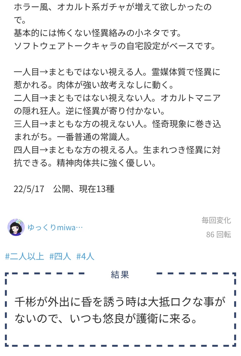 10TRPG_sWaaamP☆quiet followDOODLE@TRPG_TL地獄自陣で遊びまくった診断のやつ1〜5:心霊現象にあう地獄6〜14:わちゃわちゃしてる地獄15〜最後:幼児化 show all(+20 images) Tap to full screen (size:1170x1726).Repost is prohibited Let's send reactions! freqpopularsnackothersPayment processing Replies from the creator Follow creator you care about!☆quiet follow 10TRPG_sWaaamPPAST貴様らのエデンはここです自陣らくがきつめつめ2 22 10TRPG_sWaaamPSPOILERHave a nuts and funny time!現行未通過❌シナリオ内で使用したスチル 5 10TRPG_sWaaamPINFOCall of Cthulhu娘娘パニック〜陽陽を添えて〜KP▶︎▶︎凸PL▶︎▶︎10。【シナリオクリア】「なんなんだ本当に!?」「もういい加減にしてくれ……本当に💢」 3 10TRPG_sWaaamPSPOILERはじめまして げんみ❌case.橘一葵 5 10TRPG_sWaaamPSPOILERはじめまして げんみ❌case.月影堕落 10 10TRPG_sWaaamPSPOILER心臓がちょっとはやく動くだけ現行未通過❌case.ドマーニ・スペランツィオ 8 recommended works ewy23144696DOODLE白流+白散+流散3p 4 arigatona101DOODLE0721 2 daooooooooDOODLE⚠️中文注意 4 peiyuDOODLErtkz格ゲー祭りの時に見えた幻覚を放置しすぎてもう手が付けられないので供養 Few__2516DOODLEStanxeno 18⬆️ yes/no 2 radonDOODLEえっちくないただのラブラブハッピ〰️💕👫💕るるるのる←草会話内容がおセンシ 3 Nebel_closetDOODLE落書き。触覚のある大柄の子がオレア、カマキリみたいな子がドミノ、髪の毛ふわふわな少年はシルキー。 27 viikaviDOODLESupport me and get a lot of goodies💖: www.patreon.com/viikaviAll links: viikavi.carrd.co/ ⑅⃝︎ྀིDOODLE十夜の口から語られる二人との思い出話。しかしただの思い出話ではない。