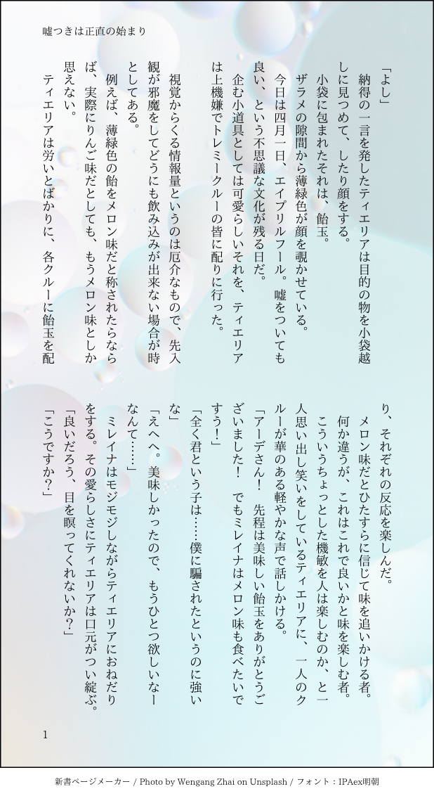 すたうさ☆quiet followDONEティエミレと刹フェル嘘つきは正直の始まり ##ガンダム00 show all(+3 images) Tap to full screen (size:618x1132).Repost is prohibited すたうさMAIKING現パロ槍盾(初期槍×マイルド盾)お鍋を一緒に食べたいお年頃。多分完成させたら本に収録します。多分ね。 2728 すたうさDONE初期槍盾。誕生日を祝いたい陽キャと祝われたい陰キャ 3676 すたうさDONE※再掲文字版現パロ槍盾(初期槍×ワイルド盾)柔軟剤の話とかどうよ。尚文くんは果物のグリーン系で元康くんは甘めのフローラル 1955 すたうさDONE※再掲文字版現パロ槍盾(初期槍×マイルド盾)コンビニに行って買い食いする2人のお話。 3021 すたうさDONE※再掲文字版初期槍盾。夜にばったり会った二人が宿に繰り出す話。 2467 すたうさMAIKING※再掲文字版メルロ(メルアフ)槍盾♀。先天性女体化。廃人槍をお世話してるメルロお義母さんがよしよしせっくすする話。多分仕上げて本に収録予定。 5574