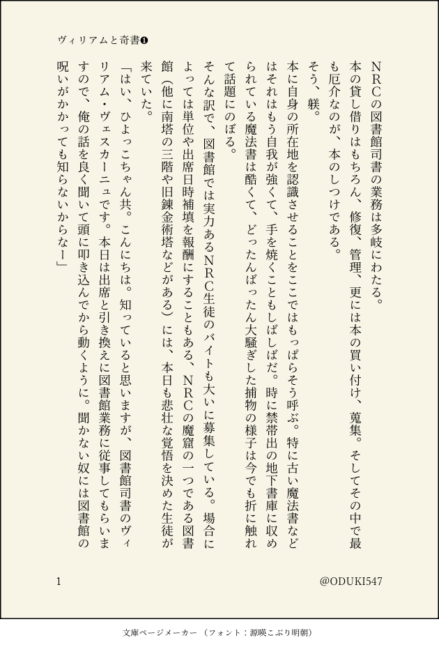 小月 輝☆quiet followPROGRESS図書館司書ヴィリアムの日常〜ヴィリアムと奇書❶〜今回のイベントで図書館について色々言及されていて興奮した末にゲテモノが生まれました。読んで気持ち悪くなる要素が含まれます。注意続きますが、これだけでも綺麗に区切れたので、❶はここまで。 show all(+7 images) Tap to full screen (size:630x928).Repost is prohibited Let's send reactions! freqpopularsnackothersPayment processing Replies from the creator Follow creator you care about!☆quiet follow 小月 輝DONEモブランオンリー6参加小説嘆きの島では現在青色完全栄養食が主食として扱われている。島内の職員には受けが良いが、島外での評判はどうだろうと疑問に思ったモブ主任は、人種の坩堝であるNRCに通うオルトにアンケートをお願いした。 9 小月 輝DOODLE4月ぐらいにぐわーっと書いた話。逆行話の未来ifだったもの。最近のつかピ図太いので、多分こうはなりません。よだじゅんにペディキュアを塗られるつかピの話です。えっちはないけどインモラルなので。pass:18↑?(y/n) 10900 小月 輝DOODLEえっちなおにしょた幼妻(?)☀️よだつかにする為にファンタジー設定盛り盛りにしました。皇室に受け継がれる太陽神司を、今代の皇帝夜鷹純がめちゃくちゃにするだけの話。ちゃんと一対一でハピエンです。モブはないです!!Pass:18↑? 8623 小月 輝PROGRESS図書館司書ヴィリアムの日常❷〜ヴィリアムと奇書と被害者〜話がどんどん予期しない方向に転がっていく奇書とか、読んだら発狂する本の話とか大好きです。本の修繕の話とかもみたい。NRCの世界だから、絶対開いだけで呪いかけてくる本あるって。本に操られるとか。シュマンジみたいに取り込まれてゲームクリアしないと帰れないとか、そういう系の話絶対にあるって。 9 小月 輝PROGRESS図書館司書ヴィリアムの日常〜ヴィリアムと奇書❶〜今回のイベントで図書館について色々言及されていて興奮した末にゲテモノが生まれました。読んで気持ち悪くなる要素が含まれます。注意続きますが、これだけでも綺麗に区切れたので、❶はここまで。 8 小月 輝MOURNINGマレイデ結婚式妄想。モブ要素が少しあります。 6 recommended works ニノ式 啓水DOODLE龍狐AUの忘羨です。 2 水無月玲花PAST忘羨ワンドロより『傘』原作軸SS 2 あさねPROGRESS寮服むずかし… Sketch1008DONE【まとめ】パロとかMXTX作品関係今年に入ってTwitterに投げていたイラストをまとめてみました。城主のポ〇モンパロを考えていたちょうどその時に、☆先生も殿下のパロ絵をあげてらして、胸が高鳴っちゃったな… 6 kow_7726TRAINING下戸藍湛×バーテン魏嬰〜握手編〜 1759 komakikamonoDOODLE3人nbdtfkdt🔞pass❤️🎂3桁無理な方はUターン 林 田DOODLEドラマ放送後数年経つのに今も家規が増えてそうな藍氏。ティーバッグ発売おめでとうございます。面白すぎてここ最近ティーバッグのことしか考えられなくなってます。 wakababiboDOODLE【五伏】殴り書き mochi_oshiroiDOODLE女体化 おにく+ひやまと仁ちゃん 3