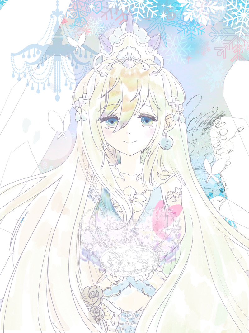 背景のイメージがなんとなく固まってきたので、素材サイトさんのを借りでいれてみました!実際は自分でかきかき!バックは布を広げたようなオーロラ。雪の結晶とかも角度をつけたいですね。ウェヌスちゃんは家庭的で園芸や海にかかわってくる神姫のようなので、花や植(右はプランター・水晶に花や氷の鎖を絡ませる)や海産物(シャンデリアを貝殻のものにしたい)などをおいていきたいです。手に持っているのはフロストフラワー。