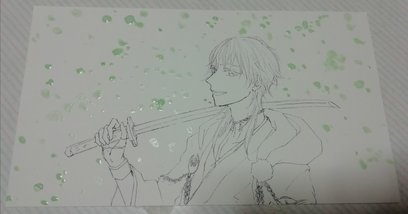 マスキングペン買ってたのですが細くて使いにくく、久しぶりに瓶入りのから筆でぬりました。