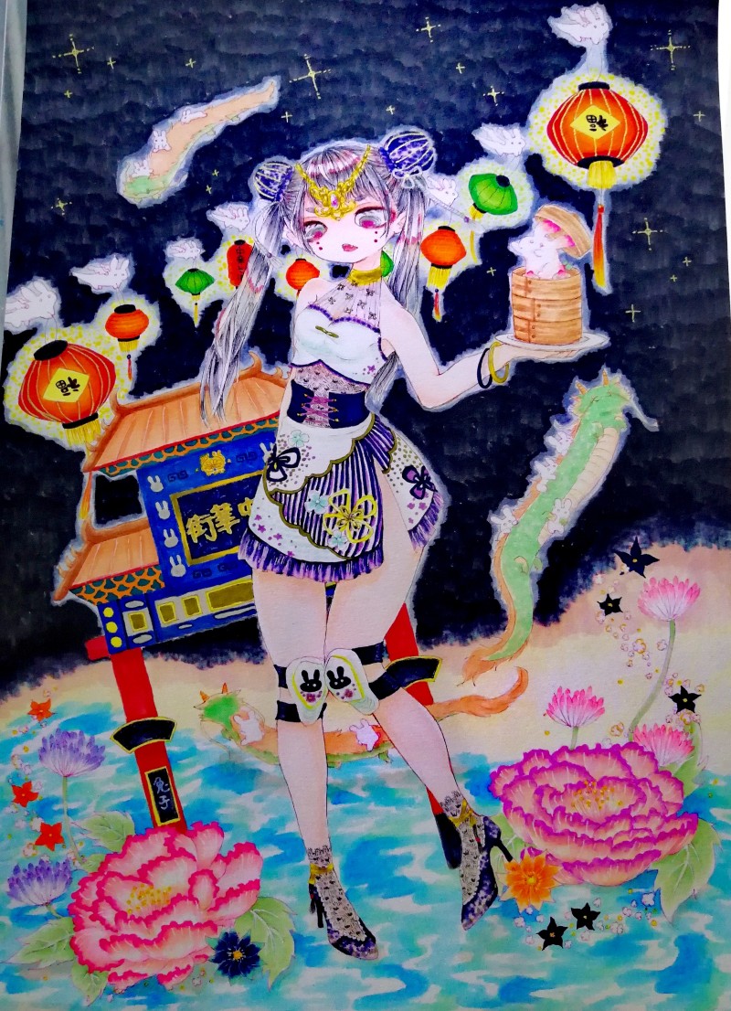 いつもの中華街のはずなのにいつのまにか沢山のうさぎ達が現れて