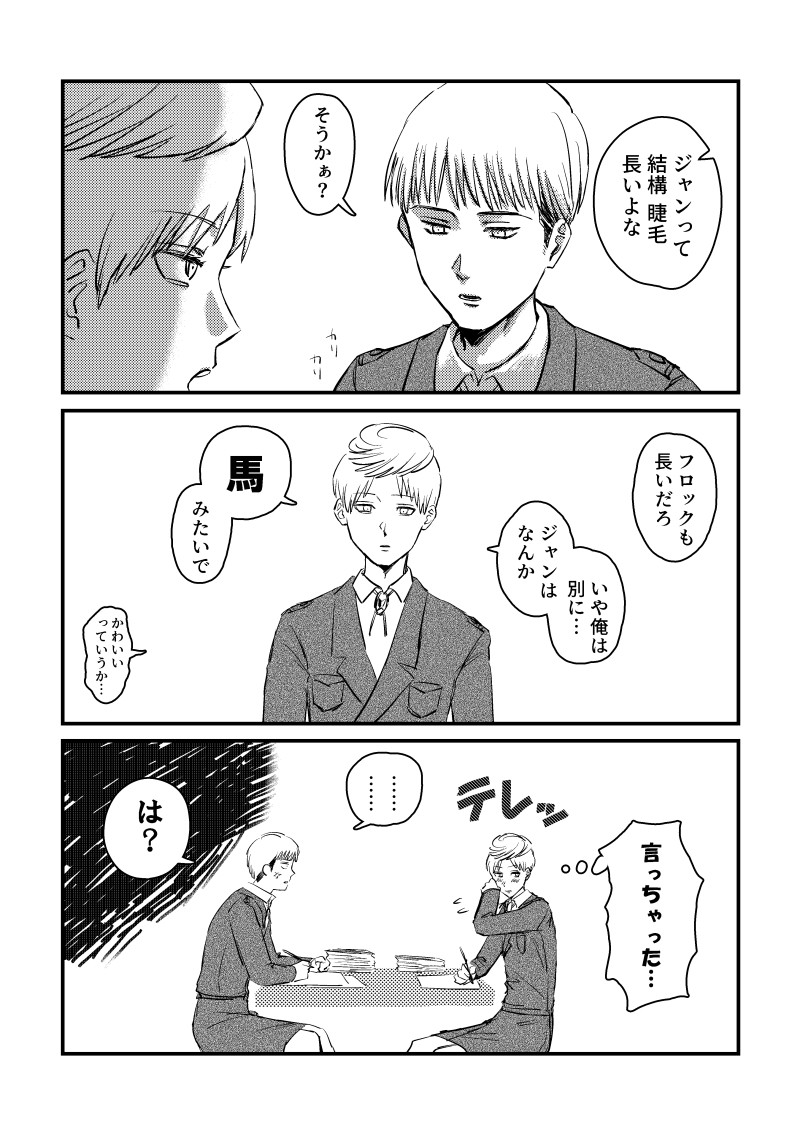 kame_SF☆quiet followMOURNING(ただの再掲です)最近のフロジャン画質いいバージョンTwitter用にちょっと画質悪くしてたので… show all(+3 images) Tap to full screen (size:3496x4961).Repost is prohibited Let's send reactions! freqpopularsnackothersPayment processing Replies from the creator Follow creator you care about!☆quiet follow kame_SFDOODLEツリーを読まなきゃわからない話( https://x.com/kame_SF/status/1735680449622765878?s=20 )フロ→ジャン→ミカでエレミカがちょびっと(エレン出てこない) 4 kame_SFPAST※既刊の役者パロ本の後日談みたいなネタ半年くらい前のジャンミカオンリーの無配ペーパー載せてなかったっけ…?と思って 2 kame_SFPROGRESS新刊の進捗! kame_SFDOODLEフロジャン…*モブもいる合意も愛もある!!!そうは見えなくても! kame_SFDOODLE海賊×人魚エレミカ( https://poipiku.com/657306/9063088.html )の続きもうちょい丁寧に描こうと思ったんだけどペンの調子が悪くて…(言い訳) 4 kame_SFDOODLE海賊×人魚のエレミカ落書きまた人魚 肌色多めなのでポイします没にしたところ、ミカサが銛使って船員に抵抗するシーン(人間の言葉わからないので、また暴力振るわれるのかと勘違いしてる)なんだけど、人魚ミカサちゃんの性格を原作軸のエレンと出会う前の感じでイメージしてたので、抵抗とかしないで諦めちゃうかな…と思って没にしました 5