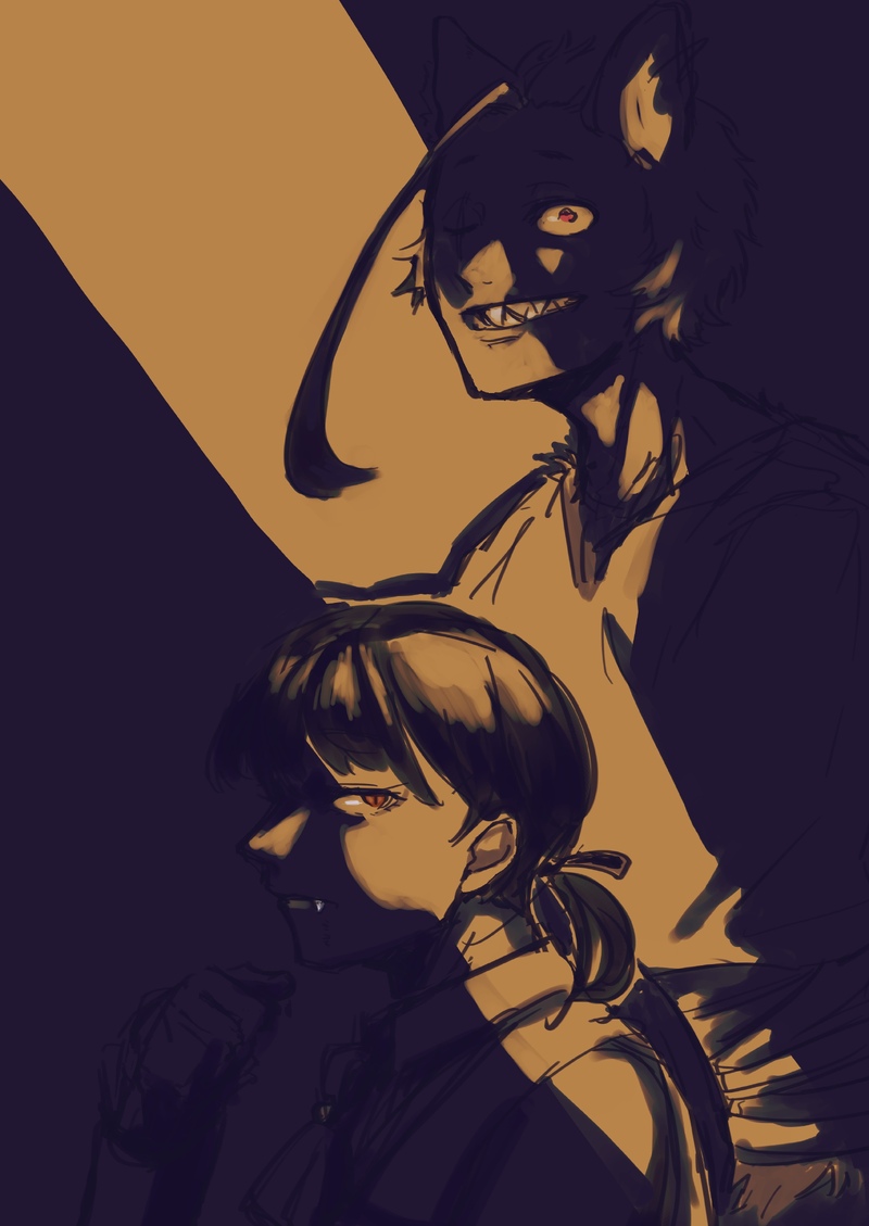 ぼさん狼男(女)とぼよん吸血鬼(男)。エンド後のハロウィンにて。