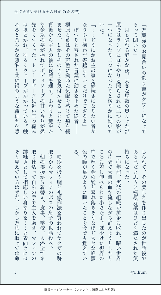 riri73☆quiet followPASTカズ空🍁⛅️主従パロSS⛅️くんがマフィアのボスの息子で🍁くんが⛅️くんの世話役兼ボディーガード+αの話趣味全開&書きたいところだけ書いてます✌️ #カズ空 cassowarySky #万空 wankong show all(+6 images) Tap to full screen (size:618x1132).Repost is prohibited Let's send reactions! freqpopularsnackothersPayment processing Replies from the creator Follow creator you care about!☆quiet follow riri73DOODLE祈祷師ひかりん(一応テメヒカ)えろじゃないけど服装少し乱れてるのでワンクッション 2 riri73DONE今更ですがポッキーの日テメヒカ漫画⚠️現パロです(社会人テメ×大学生ヒカ) 2 riri73DONE付き合ってるテメヒカ漫画【修正版】 4 riri73DONEテメヒカ/宿屋にて加工前のほうが好きだったりする 3 riri73DONE【🍁くんの2023年の誕生日メール漫画/カズ空】🍁くんの手紙を心の拠り所にしてる⛅️くんとそれがとても嬉しい🍁くん 4 riri73DOODLEカズ空らくがきスタンプの通知のおかげで最近ポイピクに絵をアップしてないことに気づきました🙏いつもスタンプありがとうございます🙏✨☺️ 2 related works AGEHAMEWPROGRESS🔑kazuther sketch;12/20/2022万空創作ラフータイムラプスとかトリミング前高解像度拡大画像版はファンボックスの中。https://enlilarts.fanbox.cc/posts/3682991 AGEHAMEWDOODLE🔑万空のヘイワット事情 601 AGEHAMEWDOODLE🔑万空ヘイワット劇場の備忘録集。 1801 AGEHAMEWPROGRESS🔑えーてる厚塗り AGEHAMEWPROGRESS🔑神の目ビジョン!Just because i post my artwork (WIPs ) exclusively for Twitter followers on Poipik does not mean that i am drawing and publishing nsfw or R18 art. AGEHAMEWDOODLE🔑タル鍾万空。捏造がたくさん 1192 riri73DONEカズ空本「くちづけは甘い誘い水」のおまけ漫画です(web拍手の漫画とは別です)本文9ページと10ページの間にあったエピソードになります。🦌くんと⛅️くんしか出てませんがカズ空です。※パスワードは本のおくづけの下部に載ってます。 4 riri73PASTカズ空🍁⛅️主従パロSS⛅️くんがマフィアのボスの息子で🍁くんが⛅️くんの世話役兼ボディーガード+αの話趣味全開&書きたいところだけ書いてます✌️ 7 chyfr27DONE 17