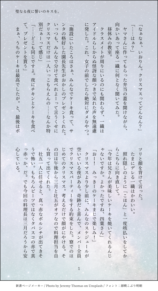 うき☔️☆quiet followDONE✏️聖なる夜に誓いのキスを。クリスマスプレゼントを渡したい環の話一織に相談します(最後イラストあります)※環壮 ##文章 show all(+9 images) Tap to full screen (size:618x1132).Repost is prohibited Let's send reactions! freqpopularsnackothersPayment processing Replies from the creator Follow creator you care about!☆quiet follow うき☔️DONE8/29 TMS.fes2WEB展示マンガ※全年齢ですがキスしてます⚠️サドビOPが尊くて…マンガはじめて描いてみました!ボードにコメントいただけたら泣いて喜びます〜🥰 6 うき☔️DOODLEメイドの日※女装 うき☔️DONE環壮結婚しました!結婚式のペーパーアイテムです。※完全なる妄想です 9 うき☔️SPOILER⚠️ダンマカネタバレロイエとシャオの例のシーン二人の関係が好きすぎて辛さをぶつけました 2 うき☔️DONEダンマカプラセルとシャオ(友情出演タマソニー ソーマス) 3 うき☔️DONEDiDタマソニーとソーマス 3 recommended works 105@海自艦擬人化DOODLE173と115でねこの日ネタ(遅刻)おふざけ。 うき☔️PAST環壮まとめ 9 うき☔️DONEDiDタマソニーとソーマス 3 kagonmasanDOODLE #アイドリッシュセ腐ン#二次創作#環壮#アイビス#アイビス練習#BL maya3kro3PROGRESS 9underground_syINFO8/29(日)TMS.fes2に参加します。THE.SECRET.BOXA hall 「え1」えんぴつ漫画とかイラストとか載せます。 sc4ever50DOODLE도트야짤 승화 CalakaDOODLE最近の絵 4 AllxHoshiDOODLEGift from Penacony: 🦚💫Aventurine paid Caelus 100k+ Credits 💳18↑? (yes/no) 3