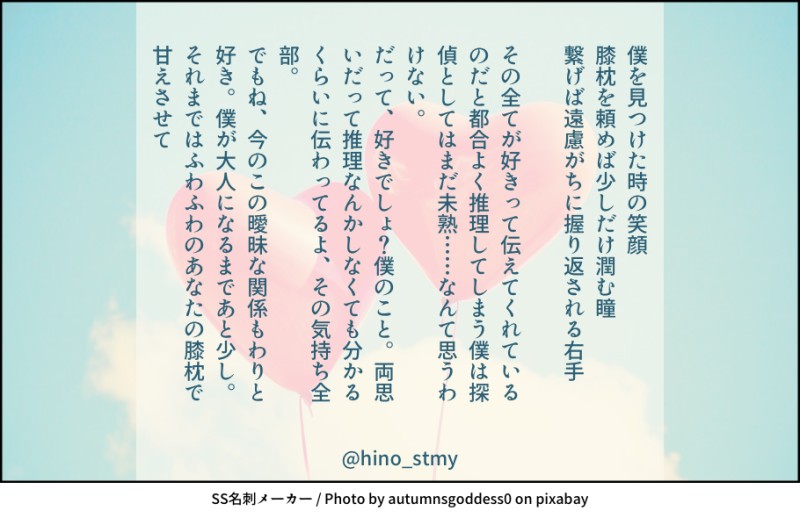 hino_stmy☆quiet followDONE志音くんお誕生日SS #スタマイ stamae #日向志音 shineHyuga Tap to full screen (size:910x590).Repost is prohibited Let's send reactions! freqpopularsnackothersPayment processing Replies from the creator Follow creator you care about!☆quiet follow hino_stmyDOODLE【勝手に妄想してみたを勝手にまとめてみた】twitterでちょこちょこと呟いていたとんでもなく自分本意の妄想が並んでるだけです 6 hino_stmyDOODLE夜を営むヒーローズ(耀玲、カナ玲、菅玲)妄想を促す短文が書きたかった 3 hino_stmyDONE嘘にならない嘘/早乙女→玲⇔瀬尾暗いです。早乙女さんが報われないです。なので、苦手な方はご注意を! hino_stmyDONE耀玲スタマイ勢はみんないい香りがするんじゃないかっていう妄想から書いてしまった hino_stmyDONE桜と恋のキューピッド?/芝玲*芝の日記念SS芝さんのところへやってきた玲ちゃん。何やら相談事があるようで…… 4 hino_stmyDONE京介くんお誕生日SS僕に夢中なキミと俺/京玲せっかく二人きりになれたのに、キミは画面に夢中で…… 3 related works 雨音 鈴DONE桧山さん🎉お誕生日おめでとう!!ギリギリ間に合った~ペン入れはアナログでやってみました。いつも桧山さんの言葉に励まされます。強さとは、温かさであり、優しさ。これからも桧山さんを応援していきたいなぁ。 うめ@眠いPASTお試しで過去絵#スタマイ #宮瀬豪 カヤコDONEstmyイメージお題企画よりお借りしたお題で♡耀玲×2、関玲、渡玲の4話 6 小夜の倉庫DONE「恋は人を愚かにする」(誠玲)/2018.1.21誠玲も増やしたい……。 6 jun_horai0111swDONE初書き宏玲初デート(仮)の一幕とでも思って頂ければ|*・ω・) 2 小夜の倉庫DONE「Marking」(潔玲)/2018.3.2プライベートでの潔くんの嫉妬台詞があまりにエモかったので。 5 小夜の倉庫DONE「白に包まれ」(宮玲)/2018.2.19本編未完結の時期に書いたものなので、しんどい感じになっています。 4 jun_horai0111swDONEフォロワーさんとの企画で、「春」と「ほんわか」のテーマで書いた蒼玲ちゃんです❤素敵なタイトルをフォロワーさんに考えてもらいました~(∩˘ω˘∩ )♡ 4 saya_starmoonDOODLEお試しぽいぽい。司玲ちゃん。#スタマイ recommended works saya_starmoonDOODLEお試しぽいぽい。司玲ちゃん。#スタマイ もなDONETwitterにあげたもののまとめ。 5 小夜の倉庫DONE「狼なんかこわくない」(潔玲)/2018.2.4潔くん実装イベントを終えて。 5 小夜の倉庫DONE「あなたを永久指名」(九玲)/2018.3.7ホストになった九条さんのSRカードが欲しくて、祈願で書きました。 4 小夜の倉庫DONE「お前には敵わない」(郁玲)/2018.3.26 6 jun_horai0111swDONEツインテールの日樹玲ちゃん mmgm_kzsDONEカナメさん本編完結記念。(この続きで数年後のR18妄想を書きたい) 5 hino_stmyDONE服部さんお誕生日SS 3 hino_stmyDONE槙くんお誕生日SS 4