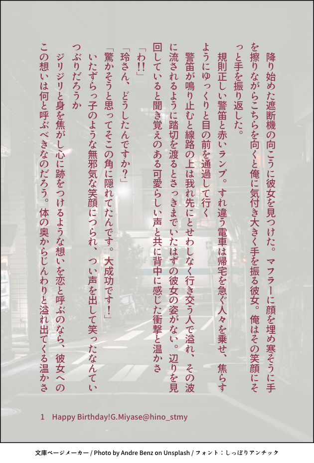hino_stmy☆quiet followDONE宮瀬さんお誕生日SS #スタマイ stamae #宮玲 gongLing show all(+1 images) Tap to full screen (size:630x928).Repost is prohibited Let's send reactions! freqpopularsnackothersPayment processing Replies from the creator Follow creator you care about!☆quiet follow hino_stmyDOODLE【勝手に妄想してみたを勝手にまとめてみた】twitterでちょこちょこと呟いていたとんでもなく自分本意の妄想が並んでるだけです 6 hino_stmyDOODLE夜を営むヒーローズ(耀玲、カナ玲、菅玲)妄想を促す短文が書きたかった 3 hino_stmyDONE嘘にならない嘘/早乙女→玲⇔瀬尾暗いです。早乙女さんが報われないです。なので、苦手な方はご注意を! hino_stmyDONE耀玲スタマイ勢はみんないい香りがするんじゃないかっていう妄想から書いてしまった hino_stmyDONE桜と恋のキューピッド?/芝玲*芝の日記念SS芝さんのところへやってきた玲ちゃん。何やら相談事があるようで…… 4 hino_stmyDONE京介くんお誕生日SS僕に夢中なキミと俺/京玲せっかく二人きりになれたのに、キミは画面に夢中で…… 3 related works 小夜の倉庫DONE「ひとつまみの愛があるなら」(宮玲)/2018.5.3宮瀬本編が佳境に入る中、しんど過ぎて書きました。 4 小夜の倉庫DONE「苺のショートケーキを召し上がれ」(宮玲)/2018.3.23フォロワーさんのお誕生日プレゼントとして。 7 jun_horai0111swDONE学園パロ体育教師宮瀬先生と新米教師玲ちゃん。 4 小夜の倉庫DONE「独占」(宮玲)/2018.1.15 4 小夜の倉庫DONE「誘惑」(宮玲)/2017.12.22初めての宮玲。 karuustar8DONEにっこり幸せな宮玲を描きたかった 小夜の倉庫DONE「秘密のキス」(宮玲)/2018.1.9 2 小夜の倉庫DONE「白に包まれ」(宮玲)/2018.2.19本編未完結の時期に書いたものなので、しんどい感じになっています。 4 小夜の倉庫DONE「本当のあなたを愛します」(宮玲)/2018.1.10 3 recommended works sou_1110yumePAST運命と初恋と新玲ちゃんと都築兄弟サンドが大好きで、たまにシリアス描く。被害者は主に渡部さんと菅野くん。#スタマイ #スタンドマイヒーローズ 4 もなDONEスタパ、推しが来ません。描いたら出る、描いたら出る………! jun_horai0111swDONE付き合ってすぐくらいの関玲ちゃん 4 jun_horai0111swDONE勝手にバレンタインSS祭りww渡玲ちゃん 4 mnm_0010_kiDOODLE宏弥くん jun_horai0111swDONEナンパの日耀玲です 6 sou_1110yumeDOODLEカナメくんと槙くんを描きたいだけ。 3 姫葵DONE久しぶりに完成させられましたね こま。PAST【ヒーロー×玲】 7