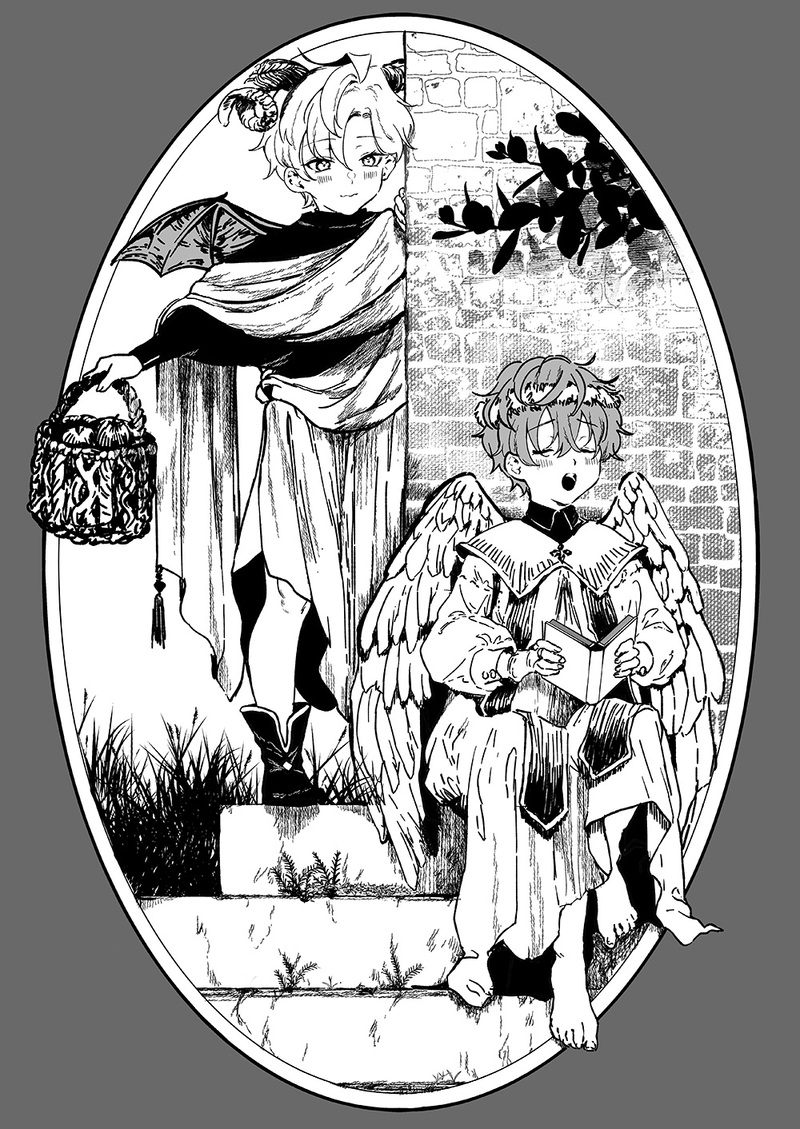 全くもってワンドロじゃないけど👼と😈の絵です