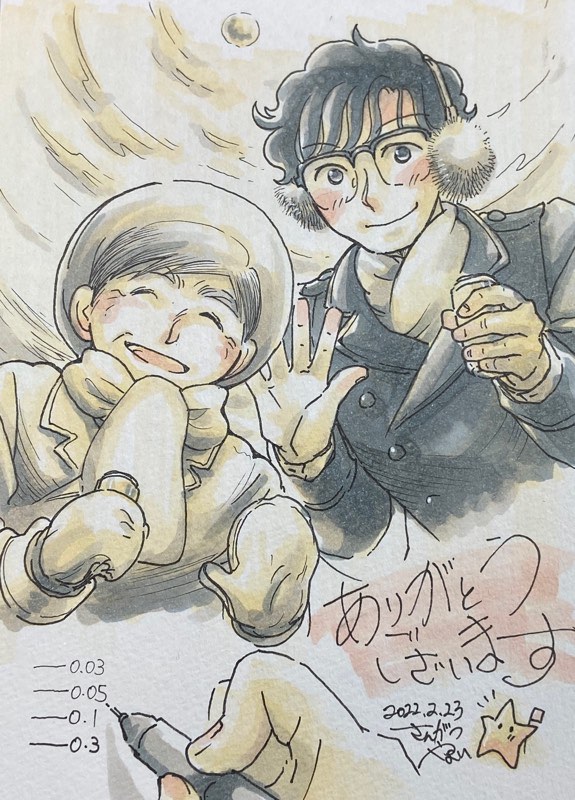 sanga2paper☆quiet followDOODLE #アナログお絵かきコンテスト と、#クリスマスイラコン2021 で、それぞれプレゼント頂いた嬉しさを爆発させたお礼絵です。ありがとうございました‼︎ m(_ _)m #創作 creation #一次創作 Original Creation #アルコールマーカー alcoholMarker show all(+1 images) Tap to full screen (size:575x800).Repost is prohibited Let's send reactions! freqpopularsnackothersPayment processing Replies from the creator Follow creator you care about!☆quiet follow sanga2paperDOODLE呉竹水彩紙にエフ水彩(ペールオレンジ、ぞうげいろ、はいいろ)。水色だけ100均の固形絵の具#透明水彩#半透明水彩#ふれずの勇者 2 sanga2paperDOODLEコピックイラコンに出した二作+間に合わなかった一枚+オマケらくがき#コピック#一次創作 5 sanga2paperDOODLE桃の節句・耳の日・ウサギの日それぞれの絵。順に、キャンドゥのアルコールマーカー、ホルベイン透明水彩、呉竹筆ごこち(普通の・うす墨・極細)で#一次創作 6 sanga2paperDOODLEクーピーマーカー(夕焼けカラー、朝焼けカラー)の試行錯誤絵まとめ。途中にジャンボカラーや色鉛筆との比較絵もあります#クーピー#アナログ#一次創作 5 sanga2paperDOODLE毎年恒例2023〜2024年跨ぎ絵、経過もまとめておきます#オリジナル#一次創作 10 sanga2paperDOODLE1枚目…25年前に描いた漫画の表紙を、今の絵で描いたもの2枚目…25年前に描いた漫画の表紙を、今の彼らで描いたもの3枚目…25年前に描いた漫画の表紙(写真)#一会町トリオ3枚目以外はカクノ細・極細で#万年筆#オリジナル#アナログ 3 related works チェラテPROGRESS2018/12/14 20:31:21スプーンに苦戦してます チェラテDOODLEほぇっ2018/12/05 03:05:50頭は良くても運動が出来るとは言っていない 丁路郎/ていじろーDOODLE最後微グロ 5 めんめんめめめんめんDOODLEハカジョちゃん 42 しろがねDOODLE0428 ゆいちDONE #一次創作 #透明水彩 過程 5 しろがねDOODLE0428 メイキング動画ってどうやってつくるんだろうなーって試しにやったものの撮れなかったやつとアクキーにするやつです。 2 チェラテDOODLE言っては行けないことがポロリ。抑えてもポロリ。うっかりポロリ。花吐き病?2018/12/07 03:00:38 しろがねDOODLE0428 へたれんきんじゅつしさんつめあわせ 7 recommended works ほしこめReuse Halloweenユーリオンアイスのキャラクターです#透明水彩#ユーリオンアイス#ヴィクトル・ニキフォロフ#勝生勇利 4 咖哩なんぽ(アンポ)PASTサガフロンティア 白薔薇姫画材は、ウォーターフォード ナチュラル水彩紙、ホルベイン アクリリックです。 2 meiraru58941PASTアナログイラスト祭り 4 sanga2paperDOODLE珍しく「めんどくさいな」って顔してるセンセ。キャンドゥのツインセルライナー0.3試し描き #かく幽 sanga2paperDOODLE幽玄さんとセンセも北海道に来てた落書きというか一発描きのアイデアスケッチ #かく幽 3 coroDONEビスケット。お菓子作り楽しいね🍪透明水彩で塗った後に加工した。 さけのあてPASTお題もの 6 鬼頭夢多DONE2020.11.13猫又おかゆ60万人記念ボイスネタ(アルビレオ紙.透明水彩.シャーペン) きよソラPROGRESS夏目。下塗りと線画段階。めっっっちゃ久し振りにアナログ水彩絵を描いている。水加減とか忘れてて難しいけど楽しいー! 2