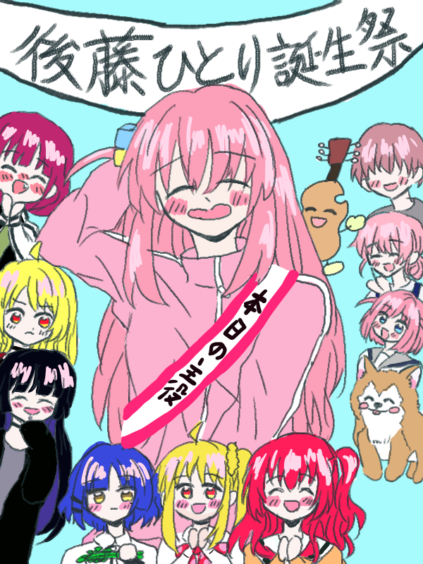 ぼっちちゃんお誕生日イラストです。たくさんぼざろキャラ描けて楽しかったです。