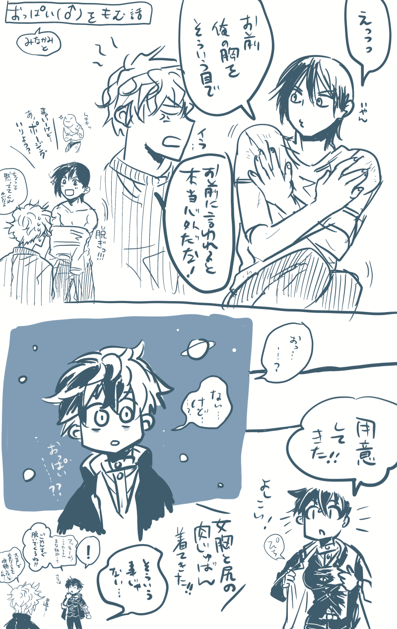 すゆう☆quiet followDOODLE作業の息抜きの、ついったみての落書き。おっぱい(男)の話題出てたのでそれ系。 ##九龍妖魔學園紀 Tap to full screen (size:2400x3800).Repost is prohibited Let's send reactions! freqpopularsnackothersPayment processing Replies from the creator Follow creator you care about!☆quiet follow すゆうCAN’T MAKE葉佩B悪ふざけ系の文字メモ「おもちゃ持ち込んで爆笑の葉佩Bとどん引きの皆守」主皆かつ下世話なのでR18ワンクッション。直接的な描写はないはず。描ける気がしなかったのでメモのまま。※メモのため誰視点だの何人称だのぐちゃぐちゃなのでそこ許容できれば。枝葉もなんもないです。あしからず。 8 すゆうPASTもうせっかくなのでこちらも置いておきます…昔かいてた葉佩A関連のものです。容赦なくネタバレですご注意! 15 すゆうDOODLE葉佩Bらくがき。 すゆうPAST今度自分用に清書しようと作業中の外法帖関連過去絵…この過去絵自体そも冊子になってるけど既にもとのデータがないので取り込みついでに。 6 すゆうDOODLE外法帖の主人公妄想など。 8 すゆうDOODLEメイドの日(5/10)と聞いて。 2