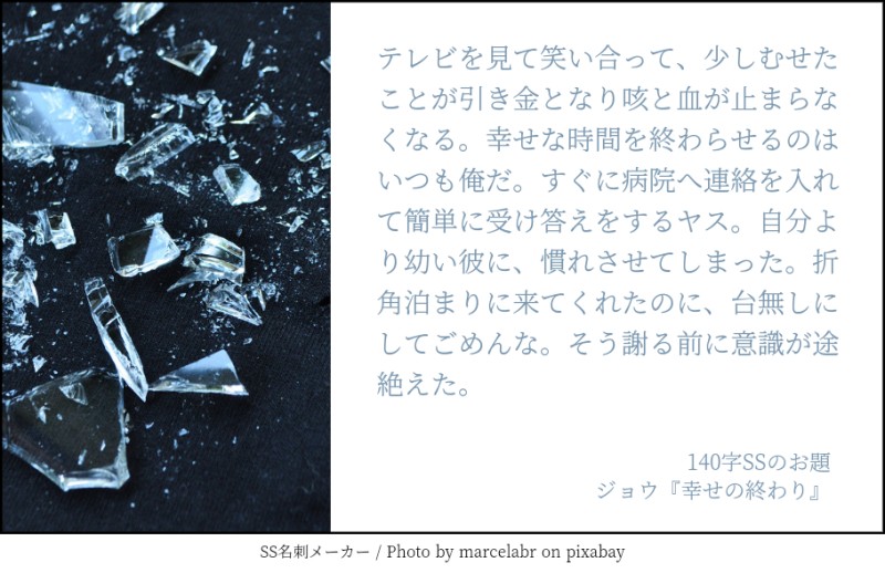 nnmy_02☆quiet followDONE1日1ジョウさんまとめ、やすじょ編。 ##やすじょ show all(+9 images) Tap to full screen (size:910x590).Repost is prohibited Let's send reactions! freqpopularsnackothersPayment processing Replies from the creator Follow creator you care about!☆quiet follow nnmy_02DONEとある悪魔と信者の話。レのつく悪魔を知っている方 かつ 何でも許せる方のみどうぞ。合言葉はYESだよ。友人に設定借りて書きたい雰囲気だけ書きました。サンキュー友人。 3 nnmy_02DONEろむじょと白の話。甘いです。 443 nnmy_02MOURNING桜が散る頃の話。を書いてたけど書きたいところ書いたら続きがうまく浮かばなくなったので供養。 498 nnmy_02DONEろむじょで書き初めしました。砂糖と読点ましましです。 650 nnmy_02MOURNINGえーじさんのクリスマスその後。の前後の話を捏造しました。えーじさん許可済み。雰囲気で読んでください。 1660 nnmy_02MOURNING🔥🍱です。表記ミスじゃないです。🔥🍱です。ただセッしてるだけなんですが一文が浮かんでしまった以上書かなければ消えない難儀な字書きもどきなので供養です。しつこいようですが🔥🍱です。 420 recommended works nnmy_02DONEやすじょ。酔っ払いじょうさんふわふわにしがち。ワードパレット頑張って全部書けたらいいなぁとは思っているので浮かんだら増えます。IDを入れることをやっと覚えました。 3 nnmy_02DONEやすじょ。死神八咫烏の話のすぐ後のこと。 2 nnmy_02MEMOろむじょ。“保健医の衣装決まって「ネクタイの結び方教えてくれ」って言ったら後ろから抱き込まれる形で教えてきて集中できないやつ”そんなネタを友人が話してたので勝手に書いた。許可は取ってる。 2 nnmy_02DONEついったに投げてた1日1ジョウさんのまとめ、そうじょ編。 12 nnmy_02DONE1日1ジョウさんまとめ、やすじょ編。 10 nnmy_02DONE1日1ジョウさんまとめ、ろむじょ編 4 nnmy_02DONEそうじょ。ワードパレットお借りしました。途中でこれ書く必要あるのかなとか考えてました。書けて良かったね。 3 nnmy_02MOURNING気が向いて続きが浮かべばと片隅に置いといたネタを書きたかったとこ書いたあと一向に気が向かなかったので供養。そうじょになるはずだったんだ。 820 nnmy_02DONEろむじょで書き初めしました。砂糖と読点ましましです。 650