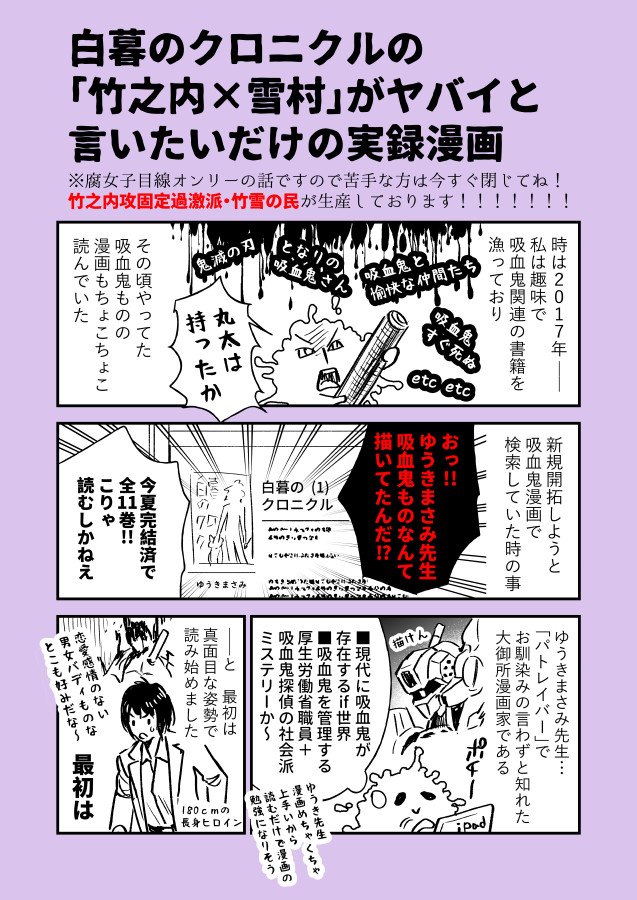 2020年12月のはくぼ電子3巻まで無料期間に描いた竹雪布教用漫画。2021年5月の無料期間に合わせて改稿。