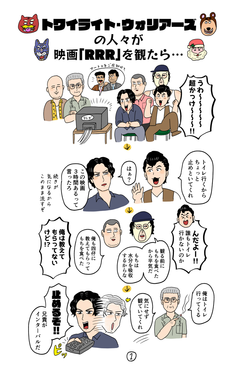 トワイライト・ウォリアーズの人々が、映画「RRR」を観たら…というもしも漫画です。