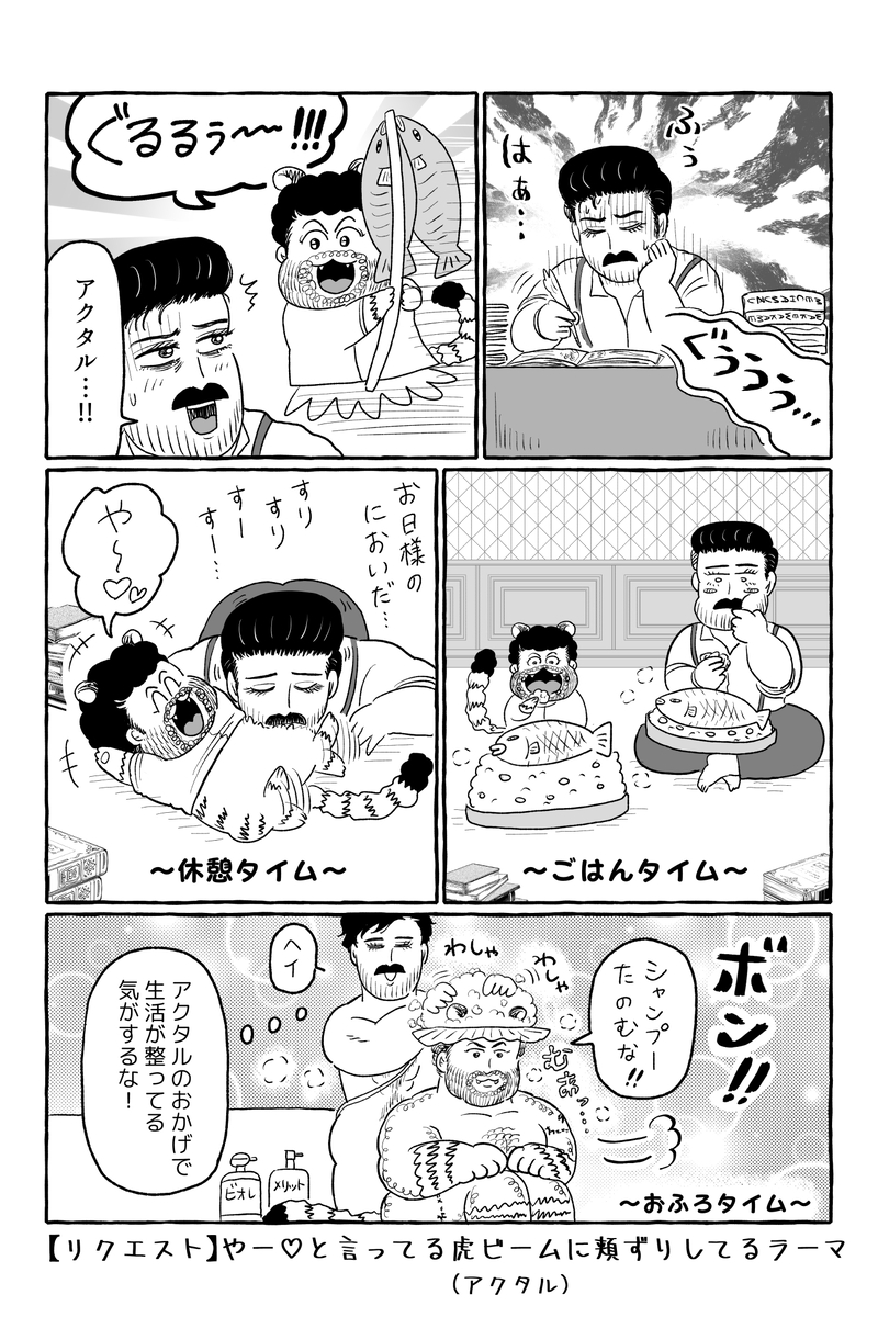 兄貴は🐯🌊ちゃんのふわふわお腹にスリスリして癒されてもろて…。リクエストありがとうございました!