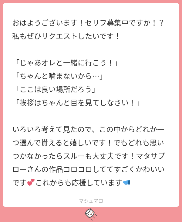 マタサブロー☆quiet followDONEたくさんのセリフをありがとうございました~!!🥳🎉どれも魅力的すぎて、全部使わせていただきました✨✍️あたたかいエールもすごくすごく嬉しいです!!📣本当にありがとうございます🙏❤️ ##リプ来たセリフで一コマ描く show all(+8 images) Tap to full screen (size:600x733).Repost is prohibited Let's send reactions! freqpopularsnackothersPayment processing Replies from the creator Follow creator you care about!☆quiet follow マタサブローDONE中の人たちの幻覚まとめです、じわじわ増やしていきたい🔑PW→till we’re ○○. 7 マタサブローDONEネタバレしかないデプウル感想 9 マタサブローDONEマーベルズネタバレ感想 マタサブローDONEミキ&クラWEBオンリー 黄昏で夢を叶えて展示作品 14 マタサブローDONE25巻リーフレットネタバレ感想 マタサブローDONE🍞🚅ネタバレ感想らくがき(ただのおたくの叫び) recommended works 皐月 龍丿DOODLE「え?!腸にまで!?」と頂いたので描きました#リプ来たセリフで一コマ描く はるのDOODLETwitterタグ / #リプ来たセリフで一コマ描く⚠️お下品あります 10 マタサブローDONE楽しいセリフをありがとうございました!😆✨お褒めの言葉とっってもうれしいです~🎉 3 マタサブローDONEリクエストありがとうございました!🤝✨楽しくて9コマも描いてしまったけどもうちょっと簡潔にまとめられたような気もする… 3 マタサブローDONEワクワクなセリフをありがとうございました!🥰ほんとはルリナさんのピンチを助けるヤローさん…とか考えてたんですけど、私の力不足でこんな感じの仕上がりとなりました🤦♀️ 3 マタサブローDONEたくさんのセリフをありがとうございました~!!🥳🎉どれも魅力的すぎて、全部使わせていただきました✨✍️あたたかいエールもすごくすごく嬉しいです!!📣本当にありがとうございます🙏❤️ 9 マタサブローDONE「ありがとうは、言った方も言われた方も幸せになる言葉なんだよ」はじめメロンさんからオニオンくんにかけた言葉にしようとしてたんですが、リプくれたフォロワさんがキバナさん推しということを思い出して変更しました🐉👻最後にメロンさんがいるのはボツ案のなごりです🍈 3 マタサブローDONEめちゃくちゃエモいセリフをありがとうございました-!✨🙏趣味をギュギュッと詰め込ませていただきました🙈 3 マタサブローINFOンワ-----!!!!あったかいマシュマロありがとうございます!😭ポケモンとにかく数が多くて手を出すにもどこからどう…?と悩んでいたので、プレゼンすごくありがたいです!さっそく今日SSをお迎えして参りましたエヘヘ🙈✨ORASも絶対やりますね!お褒めのお言葉もすんごく嬉しいですありがとうございます〜〜!!(´///`)ポケライフ満喫します!!🤝🎉 2