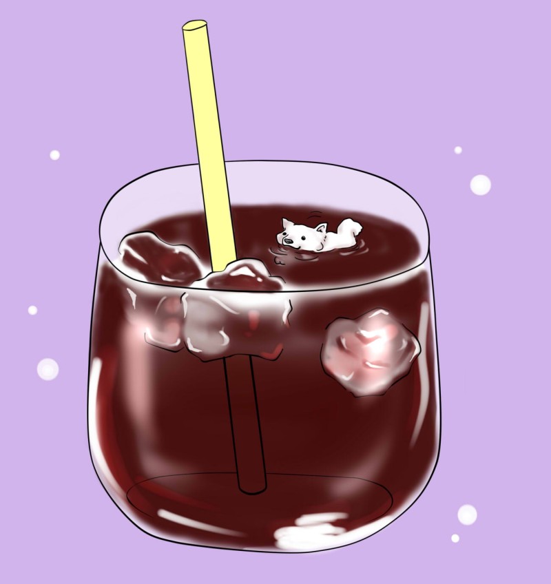 コーヒーで泳ぐ犬