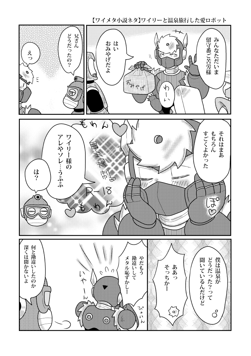 n_sirase☆quiet followDONEワイメタ小説ネタです。ワイメタ温泉旅行の話より。1Pギャグです。 #ワイメタ y-meta #DWN #メタルマン metalOperator Tap to full screen (size:800x1135).Repost is prohibited Let's send reactions! freqpopularsnackothersPayment processing Replies from the creator Follow creator you care about!☆quiet follow n_siraseDOODLE秋発行の愛テロ本のネタだし兼ねて落書きのキンとキョウ、あと二枚は昔のらくがき仕上げる気のない放置分。以前出したショウ本のネタだったり。最初は違う内容で、ショウが新キャラのやばい女につけ狙われてバイオレンスにエロイ目に合う話だったけど、全然違う話になったんだよ。だいぶ健全になったね。よかったね。 4 n_siraseDONE新刊原稿できたー。サッカーネタのギャグ漫画です。来月発行の新刊です。オール描きおろしだよ。よろしこ。ちまっとネタレベルですがカプ要素は→ワイメタとロクラシュです。あと前作から引き続きヒートとチルドが仲良し交流してます。 n_siraseDONEモノコードさまの創作漫画いつもあいまいシリーズの虎鉄くんと東さんです。大好きな作品なのでファンアート描きたかった。若様かわいいよ若様vかわいいお姉さんと少年のツーショットは大変おいしいです。魅力的なキャラさんたくさんなのでまだまだ描きたいです。 n_siraseDOODLE来年に向けて、愛テロキャラリハビリがてらにらくがき。愛テロキャラは資料見なくてかけると自信あるんだけど、さっそくショウの服間違えそうになるし、キョウの髪型も間違えそうになった。くっっ資料チラ見したよw 2 n_siraseINFO9/29のTAMAコミも申し込んでます。イベント合わせで新刊出るよ。余力とかあればマガタマちゃんの新グッズとかあればいいなー n_siraseINFO10/20の関西コミティア申し込んだよ。支払い忘れなければね。秋の新刊は自サイトリニュ20周年本の第二弾の予定だよ。まだ手を付けてないが出るだろう(他人事 related works n_siraseDOODLEワイメタコネタ二本。フラッシュは受難が似合う。好き。ワイリーと接する際はケガさせないように肩のブレードは外してます。 5 n_siraseDONEワイメタ小説ネタです。ワイメタ温泉旅行の話より。1Pギャグです。 n_siraseDOODLEワイメタ成分補給したくて勢いで描いたらくがき。しらせのとこのメタルは絶対にワイリーに甘えられそうにないし、ワイリーもメタルには厳しめなので、これはもうパラレルというか完全妄想の世界に近い。一方通行矢印おいしいです。ワイメタ充したい… 4 n_siraseDOODLEスプメタと見せかけたワイメタネタです。スプラッシュさんのナイスバディに見とれてしまいます。 2 n_siraseDONEワイメタ小説第二弾です。20年に描いた2ボス漫画【ビーチバレーしようぜ】の裏ネタ的なお話だけどパラレルです。漫画https://darosen.sakura.ne.jp/rockm/bbm1.htmlのほうもあわせて読んでもらえるとより楽しめるかと思います。ワイメタだけどワイリーは最初と最後しかいません。あとだいたい弟からキモがられている変態メタル兄さんだと思います。AIのべりすとで私とAIで交互 10021 n_siraseDOODLEワイメタ1Pギャグ二本。ワイメタネタを今月のメタル月間にできるだけ上げたい企み。 4 n_siraseDONEメタル兄さんと弟たちとの好感度をはかるイベントです。意外な結末を迎えてます。攻略難易度高いなみんな。そしてやたらとお風呂に誘う手口のメタル兄さん。もう毎回弟やワイリーを風呂に入ろうって誘うね、それがもう手口でね、笑うね。 11193 n_siraseDONEAiのべりすとでAiと私で一緒に作りました。◆ある日メタルに呼びだされた弟のウッドたちはある騒動にまきこまれてしまうことに。ワイメタ小説第五弾です。 8250 n_siraseDONEワイメタコネタマンガ。パンツマンだ。 recommended works 戌神/イヌガミ@すみのPROGRESSPV作りに苦戦中… monoTRAINING診断メーカーから いといとDOODLE揃えてしまった……アド肉担当が2人くらいいる……ハヤトにーさんは声イメージがですね、わんこの中の人なんですよね。楽しかったです!!! 7 渡辺こよ(akuta)PROGRESSカラーパターンめも 3 ShoriringDOODLE過去絵見てたら性癖ドストライクいた 木崎ダケDOODLEテストロックマン 2 サブリミナル美TRAINING目の練習。クマが好きなんだ。 ともりゅんTRAINING厚塗り練習!なかなか終わらない… 三七ふうPROGRESS慣れない塗り方したから進みが遅い遅い