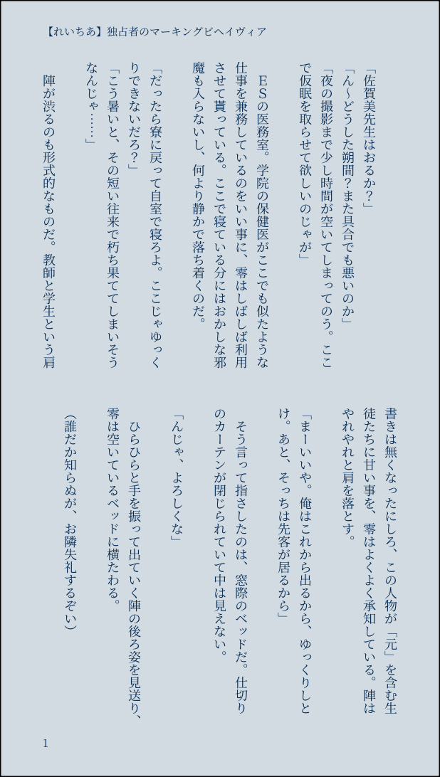 sakezawa☆quiet followDOODLE千秋受けWebオンリー【れいちあ】独占者のマーキングビヘイヴィア #あんさんぶるスターズ!! ansamburuStars! #れいちあ #守沢千秋 morisawaChiaki #朔間零 Rei Sakuma show all(+5 images) Tap to full screen (size:618x1092).Repost is prohibited Let's send reactions! freqpopularsnackothersPayment processing Replies from the creator Follow creator you care about!☆quiet follow sakezawaDOODLE千秋受けWebオンリー【れいちあ】独占者のマーキングビヘイヴィア 6 sakezawaDOODLE千秋受けWebオンリー【かおちあ】狩人がもたらすプルーストエフェクト 3 related works きりんぬPASTリプきたキャラを可愛い絵柄で描くで描いたちあバンビ❤️ きりんぬPASTかっこいい絵柄で描くリクの千秋身体もちゃんと描けるように頑張る・・・過去絵の連投失礼しました!スタンプ嬉しい!楽しい! いちにDOODLEカレーを食べに行った千秋くんと瀬名くんの落書き! 藤々かつきDOODLE 2 きりんぬPAST千秋の誕生日イラストバラがめちゃくちゃになった😭 鞠川みなおDONEフォロワーさんのイラストを、鞠川の絵柄でリメイクさせていただきました😌✨ kireiaDOODLER18 MadaChia comic“I’ve Turned into a Succubus?!Help Me Mikejima-san!”Page 6Warning: there is R18 MobChia in this part いちにPAST2017年の千秋くんおめでと絵!ここから2018年のに繋がるのかな?(考えてないけど、あそこまで進展したのかと思うと……!!) おかきDOODLE recommended works _kimoyasuPAST #二次創作 #七種茨 #朔間零 kinottaPASTらくがき零さん。 おしげDOODLEほぼ毎日おえかきしてたときのまとめ。零晃 零薫 薫晃 アド晃 晃翠色々ごっちゃ。 11 りりりDONEはい、完成したよ〜〜〜〜〜ネップリもやってるよ〜〜〜〜 2 ゆきまるTIREDあんスタの朔間零ですめっちゃかっこいい… さつきちPAST新衣装に萌えて描いたもの パイナップルDOODLE パイナップルDOODLE 白玉あずきDOODLEどうしてもロリになってしまうので全体のサイズ感を変えよかなとおもっていたけどただ狂っただけだった
