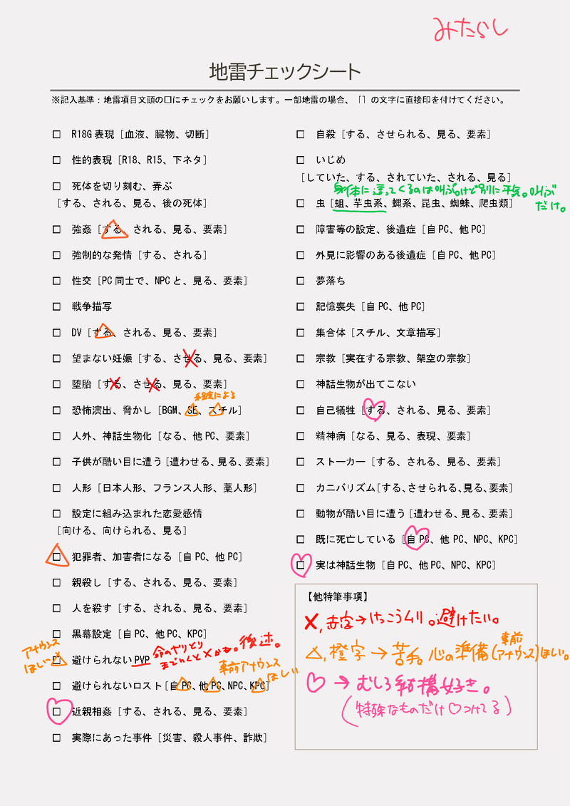 md_0w0j☆quiet followINFO細かすぎる地雷チェックシート向き合ってみたやつ。現在こんな感じだけどまだ見ぬ地雷もあるんだろうし味見していって食べれるようにもなるかもしれんし……わからん……( ˘ω˘)簡易まとめクソでか地雷→PvP、NTR(うちよそ相手が寝取られる)更新 2/19 show all(+8 images) Tap to full screen (size:1241x1755).Repost is prohibited Let's send reactions! freqpopularsnackothersPayment processing Replies from the creator Follow creator you care about!☆quiet follow md_0w0jMEMO〜お盆だよ!西日本+α一人旅〜のレポというか日記。楽しくて興が乗っちゃった。⚠️最後の2枚だけ最後の蕃神、蕃神おまけHO1シナリオ、桔梗の花が薫る時のネタバレがあるので注意です(ワンクッションは置いてあるよ!) 14 md_0w0jDOODLE伊小萩駿生誕祭はぴば!!!!!!! 2 md_0w0jMEMO 5 md_0w0jDOODLEハッピーハロウィーーーーーーーーーーーン!!!!!!!!!!!!!巴くん!!!!!!!!!!!!ちょっと肌色!!!!!!!煩悩よな。 md_0w0jMOURNING九天 skebでいただいたもの md_0w0jDONE2023瑞稀くんはぴば!フリー構図お借りしてます!