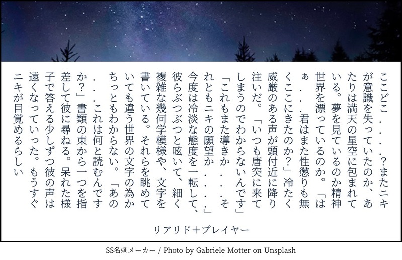 あけさと @souryoni1 あけさと、と申します。ポイピクは名刺メーカーの短文が主になります。pixivでNLや夢小説メインのまほやくや原神の二次創作物の文章書いてます。 ☆quiet follow Yell with Emoji POIPOI 55