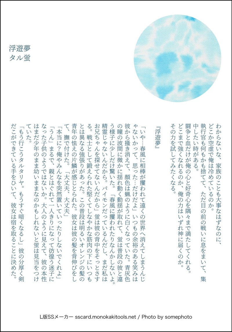 あけさと @souryoni1 あけさと、と申します。ポイピクは名刺メーカーの短文が主になります。pixivでNLや夢小説メインのまほやくや原神の二次創作物の文章書いてます。 ☆quiet follow Yell with Emoji POIPOI 55