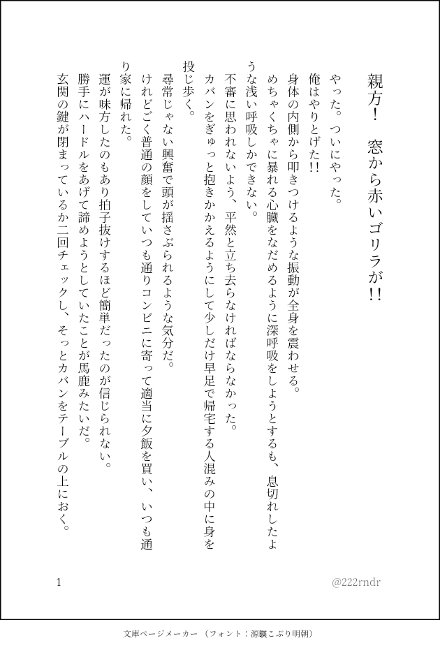 一度Twitterにあげて数時間で下げたけど、数日後に似たようなツイートした関連でまたあげた。ならまぁポイピクにも置いとくかな、と。