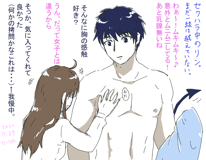 Roriie086☆quiet followDOODLE人外×人間のカップル。Twitterで上げた落書きに加筆及びセリフを加えました。凛(人間)はロア(悪魔)の胸板が気になって仕方がない。因みに二人はまだそんな関係ではないです。 #創作男女 creators #オリジナル original ##R&R #女の子 girl #創作 creation #一次創作 Original Creation show all(+1 images) Tap to full screen (size:900x700).Repost is prohibited Let's send reactions! freqpopularsnackothersPayment processing Replies from the creator Follow creator you care about!☆quiet follow Roriie086DONETwitterで上げたものの差分です。ロアと凛が裸で添い寝してるバージョンになってます♪ついでに着衣バージョンも比較に載せちゃいました! 2 Roriie086DONE創作男女がいちゃついてます。今回はR指定じゃないかな?一枚目・・・そういう雰囲気の二人。二枚目・・・初めてのお風呂の時の二人。一緒に入りたいと思ってたら残念。断られて何とも言えない心境のロアさん。 2 Roriie086DONEキャラクター相関図です。凛とヴォルフ以外は役所勤めという設定。あと、凛以外全員人外。このメンバーは全員二人が付き合っていることを知っています。 Roriie086DOODLE一応裸です。ロアとしても痛い思いや怖い思いはできるだけしてほしくないので、本番にむけて予行演習中の二人。多分こういった練習はあと2~3回行われる。 Roriie086DOODLE人外×人間のカップル。Twitterで上げた落書きに加筆及びセリフを加えました。凛(人間)はロア(悪魔)の胸板が気になって仕方がない。因みに二人はまだそんな関係ではないです。 2 related works 小雀黎DONE結局青くしました。青が似合う。簡単な塗りにしてみたけど、合う合わないは分からない…… 宙兎帆羽PASTヘッダーのヤツ #創作 #オリキャラ _caccotojiDONE🌿 かえでDOODLE ねねこDONEテスト的なアレ的なアレ特に深い意味はない#創作 amejiyaPAST創作曲ネタ絵 15 はしくんMAIKING初めてiPad Proで絵を試し書きまだ慣れないし疲れたので途中放置…。 みなせDOODLEお試し登録です。いい感じなら続けて利用したいと思います。 若松ハルキ/春樹DOODLE #アナログ #創作ネズミさんとネズミちゃん。 recommended works そーめい@sakume118UNFINISHED #創作 #オリジナル一時創作。アズドールド姉弟とルーガルロープ。デジタルむずかし。 春彩夕月DONE描きかけになってたの仕上げ~ スラカリギオアCAN’T MAKE ##オリジナル #日本刀 × #銃 が描きたかったんや。 おりのDOODLEこの前に描いたドレスアップイメージの、描ききれなかった2人暑い日が続くなぁ ひつひつDONE題名「おならプゥ」オリジナル絵を描きました。ピクシブのページも良かったら見てください(^^)(https://www.pixiv.net/member_illust.php?mode=medium&illust_id=76316234) 爽⚡️DONE手を伸ばしたい、手に入れたい、本当に手に入れていいのか?迷うなよ、ずっと欲しかったものだろう? 2 倉麻るみ子DONEうちの子アイス君の変身した姿が出来た!!! #芸術同盟変身前がこっち→https://poipiku.com/231761/1371174.html 寺川かのこDONE あおーたすDOODLE