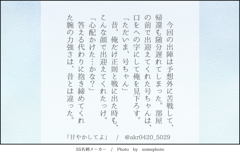 🌟akira🕊☆quiet followTRAINING貴方はakiraの号福で『甘やかしてよ』をお題にして140文字SSを書いてください。 #号福 no.Blessing #140文字SS 140-characterSs Tap to full screen (size:910x590).Repost is prohibited Let's send reactions! freqpopularsnackothersPayment processing Replies from the creator Follow creator you care about!☆quiet follow 🌟akira🕊TRAINING貴方はあきもと本丸の号福で『こんなにも愛されている』をお題にして140文字SSを書いてください。※文字数をかなりオーバーしています、、、笑 🌟akira🕊TRAINING貴方はあきもと本丸の🍶🌹で『きっとそれで正解』をお題にして140文字SSを書いてください。※文字数オーバーしています。 🌟akira🕊TRAINING貴方はあきもと本丸の🍶🌹で『はい、あーん?』をお題にして140文字SSを書いてください。 🌟akira🕊TRAINING貴方は明本の号福で『結婚しちゃおっか』をお題にして140文字SSを書いてください。 🌟akira🕊TRAINING貴方はakiraの🍶🌹で『ぐっない、良い夢を』をお題にして140文字SSを書いてください。 🌟akira🕊TRAINING貴方はakiraの号福で『ここから始まる』をお題にして140文字SSを書いてください。 related works 🌟akira🕊TRAINING貴方はakiraの号福で『雨も、悪くない』をお題にして140文字SSを書いてください。 🌟akira🕊TRAINING貴方はakiraの号福で『据え膳食わぬは男の恥、だし?』をお題にして140文字SSを書いてください。 ゆばばDOODLE号福になる予定の号+燭SS(800字くらい)福不在続く予定だったけどひらめきが足りないので一旦ここまで 2 o_matchaREHABILI※モブ視点※現パロか現代潜伏任務中かはご自由に 6431 🌟akira🕊TRAINING貴方はakiraの🍶🌹で『捨てられないガラクタ』をお題にして140文字SSを書いてください。※現パロ・号ちゃんがショタです Lasen73MAIKING顕現したての実休×極燭台切 6270 🌟akira🕊TRAINING貴方はakiraの号福で『花言葉で愛を告ぐ』をお題にして140文字SSを書いてください。 🌟akira🕊TRAINING貴方は明本の号福で『結婚しちゃおっか』をお題にして140文字SSを書いてください。 221012_chanDOODLE号福🔞🌹ちゃん🐄コスチューム...⚠️母乳⚠️アヘガオ18⬆️? (yes/no) recommended works 🌟akira🕊TRAINING貴方はakiraの号福で『見逃すつもりもないけれど』をお題にして140文字SSを書いてください。 🌟akira🕊TRAINING貴方はakiraの号福で『酔っぱらいの戯言』をお題にして140文字SSを書いてください。(付き合ってると思ってる号ちゃん×セフレだと思ってる福ちゃん) 🌟akira🕊TRAINING貴方はakiraの号福で『甘やかしてよ』をお題にして140文字SSを書いてください。 🌟akira🕊TRAINING貴方はakiraの号福で『幸せかどうかはともかくも、』をお題にして140文字SSを書いてください。 🌟akira🕊TRAINING貴方はakiraの号福で『その言葉が、重い』をお題にして140文字SSを書いてください。 🌟akira🕊TRAINING貴方はakiraの号福で『だれにもおしえてあげないよ。』をお題にして140文字SSを書いてください。 🌟akira🕊TRAINING貴方はakiraの号福で『心臓が痛い』をお題にして140文字SSを書いてください。 🌟akira🕊TRAINING貴方はakiraの号福で『最近可愛くなりまして、』をお題にして140文字SSを書いてください。 🌟akira🕊TRAINING貴方はakiraの🍶🌹で『幼馴染、やめたいんだけど』をお題にして140文字SSを書いてください。※現パロ、高校卒業した号×大学生福の号福です