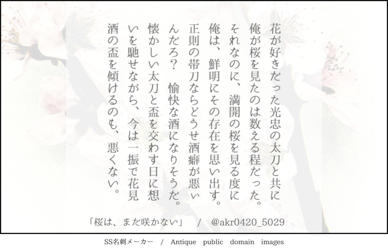 🌟akira🕊☆quiet followTRAINING貴方はakiraの号福で『桜は、まだ咲かない』をお題にして140文字SSを書いてください。 #号福 no.Blessing #140文字SS 140-characterSs Tap to full screen (size:910x590).Repost is prohibited Let's send reactions! freqpopularsnackothersPayment processing Replies from the creator Follow creator you care about!☆quiet follow 🌟akira🕊TRAINING貴方はあきもと本丸の号福で『こんなにも愛されている』をお題にして140文字SSを書いてください。※文字数をかなりオーバーしています、、、笑 🌟akira🕊TRAINING貴方はあきもと本丸の🍶🌹で『きっとそれで正解』をお題にして140文字SSを書いてください。※文字数オーバーしています。 🌟akira🕊TRAINING貴方はあきもと本丸の🍶🌹で『はい、あーん?』をお題にして140文字SSを書いてください。 🌟akira🕊TRAINING貴方は明本の号福で『結婚しちゃおっか』をお題にして140文字SSを書いてください。 🌟akira🕊TRAINING貴方はakiraの🍶🌹で『ぐっない、良い夢を』をお題にして140文字SSを書いてください。 🌟akira🕊TRAINING貴方はakiraの号福で『ここから始まる』をお題にして140文字SSを書いてください。 related works 🌟akira🕊TRAINING貴方はakiraの🍶🌹で『捨てられないガラクタ』をお題にして140文字SSを書いてください。※現パロ・号ちゃんがショタです 有馬晴DONE貴方は有馬晴のコノアサ♀で『ずっとそばにいて』をお題にして140文字SSを書いてください。https://shindanmaker.com/375517 氷輪(ひょうりん)TRAINING140文字チャレンジ9月分書いたら増えていきますR18はありませんが、不穏や事後表現等ごちゃ混ぜです。何でも大丈夫な方のみどうぞお題はすべてこちらを使用しています140文字で書くSSお題https://shindanmaker.com/320966 28 🌟akira🕊TRAINING貴方はakiraの号福で『花言葉で愛を告ぐ』をお題にして140文字SSを書いてください。 🌟akira🕊TRAINING貴方はakiraの号福で『雨も、悪くない』をお題にして140文字SSを書いてください。 🌟akira🕊TRAINING貴方はakiraの号福で『据え膳食わぬは男の恥、だし?』をお題にして140文字SSを書いてください。 有馬晴DONE 氷輪(ひょうりん)DONE金カ夢140文字チャレンジ(11月分)原作程度の流血、下ネタ、不穏等ありますので、ご注意くださいお題はすべてこちらを使用しています140文字SSのお題https://shindanmaker.com/587150 8 🌟akira🕊TRAINING貴方は明本の号福で『結婚しちゃおっか』をお題にして140文字SSを書いてください。 recommended works 🌟akira🕊TRAINING貴方はakiraの号福で『見逃すつもりもないけれど』をお題にして140文字SSを書いてください。 🌟akira🕊TRAINING貴方はakiraの号福で『甘やかしてよ』をお題にして140文字SSを書いてください。 🌟akira🕊TRAINING貴方はakiraの号福で『その言葉が、重い』をお題にして140文字SSを書いてください。 🌟akira🕊TRAINING貴方はakiraの号福で『だれにもおしえてあげないよ。』をお題にして140文字SSを書いてください。 🌟akira🕊TRAINING貴方はakiraの号福で『世界の終わりは、幸せで』をお題にして140文字SSを書いてください。 🌟akira🕊TRAINING貴方はakiraの号福で『強い人』をお題にして140文字SSを書いてください。 🌟akira🕊TRAINING貴方はakiraの号福で『君を季節に例えるなら、』をお題にして140文字SSを書いてください。 🌟akira🕊TRAINING貴方はakiraの号福で『命果てるまで』をお題にして140文字SSを書いてください。 🌟akira🕊TRAINING貴方はakiraの🍶🌹で『捨てられないガラクタ』をお題にして140文字SSを書いてください。※現パロ・号ちゃんがショタです