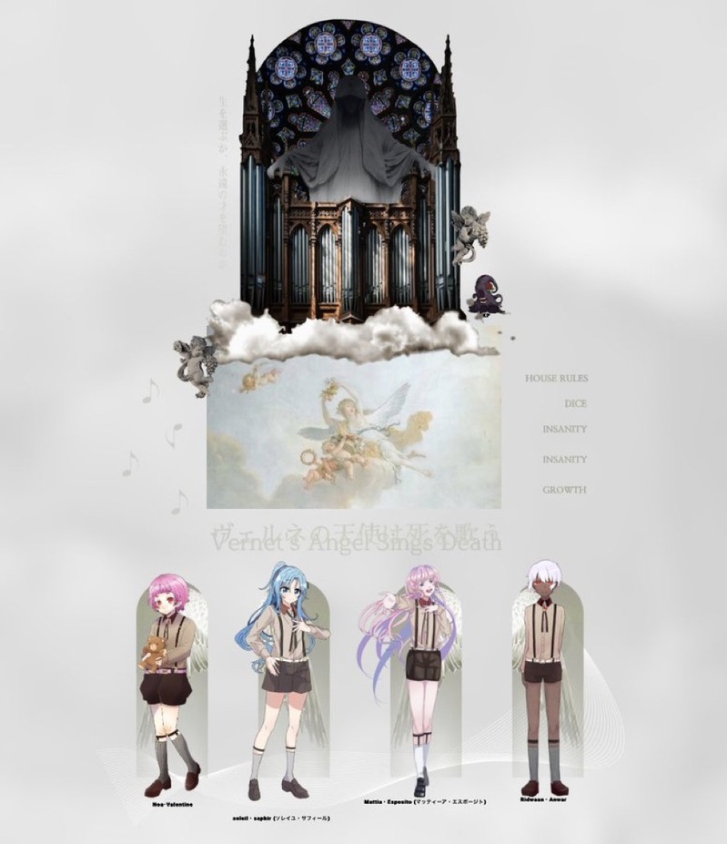 omoti_yaitaTRPG☆quiet followMEMOCoC【ヴェルネの天使は死を歌う】KP:お花PC: Noa・Valentine / やいたおもち Soleil・Saphir /さかな Mattia・Esposito/タカナシ Ridwaan・Anwar/やや全生還にてシナリオEND #やいたの卓報告 show all(+1 images) Tap to full screen (size:959x1112).Repost is prohibited Let's send reactions! freqpopularsnackothersPayment processing Replies from the creator Follow creator you care about!☆quiet follow omoti_yaitaTRPGMEMOCoC【エンドロールにワルツを】KP:わかめPC: 伊黒 /夢月 花房 アキヱ/べに ヴィネアリア /よなか ruu/やいたおもち全生還にてシナリオEND omoti_yaitaTRPGMEMOCoC【コードネーム:ドッペルゲンガー】KP:やいたおもちHO1: B.B /よなかHO2: 鱶乎聟 フカ /しそポンズ 両生還にてシナリオEND。 2 omoti_yaitaTRPGMEMOCoC【ヤドリギあやかし探偵社】KP:えみしHO鬼: 鮫山 瞬/kaiHO蛇: 深山 ひさぎ/あきHO狐: 鬼灯 /やいたおもちHO蜘蛛: 呉我山 柊果/珈琲ぎうにう第1話シナリオEND 2 omoti_yaitaTRPGMEMOCoC【ようこそ!迷冥市役所都市伝説課へ!おまけシナリオ】KP:山田HO1: 蛇魅/甘和HO2: ナナシ /やいたおもち Case.4 にてシナリオEND。 omoti_yaitaTRPGMEMOCoC【煉獄街の夜】KP:にしHO1: 昕玥/夢月HO2: 红 子梅/べにHO3: 鮫 /やいたおもちHO4: 黄 颯懍/melEND A 全生還にてシナリオEND 3 omoti_yaitaTRPGMEMOCoC【GODARCA】KP:いなり寿司PC: 画像参照 5生還17ロストにてシナリオEND 7 related works omoti_yaitaTRPGMEMOCoC【シリウスの篝火 】KP:夏軌HO1: 紅星 穂叢/べにHO2: 一條 紫之/やいたおもちHO3: 相模 藍 /melHO4: 荒木 匡/夢月Case1 閃光 シナリオEND 2 omoti_yaitaTRPGMEMOCoC【ヤドリギあやかし探偵社】KP:えみしHO鬼: 鮫山 瞬/kaiHO蛇: 深山 ひさぎ/あきHO狐: 鬼灯 /やいたおもちHO蜘蛛: 呉我山 柊果/珈琲ぎうにう第1話シナリオEND 2 omoti_yaitaTRPGMEMOCoC【天啓劫火】KP:ありあSKP:もやしHO1: 天花寺 毬/らるHO2: 大鳳 薫/ややHO3: 藏谷 真斗 /ばんびHO4: 纐纈 彩瀬/やいたおもちEND A 全生還にてシナリオEND 2 omoti_yaitaTRPGSPOILERCoC【████が消えた夏】KP:べにPC: 牧島 恒輝/かりん東野 四季凪 哉那/やいたおもち シナリオEND? 2 omoti_yaitaTRPGMEMOCoC【天使たちの黙示録】KP:ややHO1:クラウディア=ディリート/やいたおもちHO2:アスタム・ヴィヴァーチェ・ラクステス/ありあHO3:ウィッシュ=ピース/よなかHO4:ロゼ=リースリング/もやし第三の封印 予言、そして鐘は鳴る シナリオENDhttps://poipiku.com/6780875/11317974.html omoti_yaitaTRPGMEMOCoC【コードネーム:ドッペルゲンガー】KP:やいたおもちHO1: B.B /よなかHO2: 鱶乎聟 フカ /しそポンズ 両生還にてシナリオEND。 2 omoti_yaitaTRPGMEMOCoC【嘲笑う、冥々】KP:鯳子PC: 天霧 氷雨 /やいたおもち 駿河 大和/mel 両生還にてシナリオEND 2 omoti_yaitaTRPGMEMOCoC【天使たちの黙示録】KP:ややHO1:クラウディア=ディリート/やいたおもちHO2:アスタム・ヴィヴァーチェ・ラクステス/ありあHO3:ウィッシュ=ピース/よなかHO4:ロゼ=リースリング/もやし第四の封印 アポカリプス 天使たちの黙示録 END1-b 生還、または全員ロスト 2 omoti_yaitaTRPGMEMOCoC【TO YOU CLAIM 】KP:鯳子HO1: 月見 絃静/UKHO2: 藤和 萠/しきみHO3: 龍ヶ嶺 夏芽 /やいたおもちHO4: 桜井 透 /melEND D にてシナリオEND 3