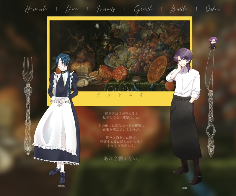 omoti_yaitaTRPG☆quiet followMEMOCoC 【グラトニヰ】KPC:曙 悠里/やいたおもちPC: 佐々宮 紫雨 /夜桜探索者生還にてシナリオEND #やいたの卓報告 Tap to full screen (size:1343x1113).Repost is prohibited Let's send reactions! freqpopularsnackothersPayment processing Replies from the creator Follow creator you care about!☆quiet follow omoti_yaitaTRPGMEMOCoC【エンドロールにワルツを】KP:わかめPC: 伊黒 /夢月 花房 アキヱ/べに ヴィネアリア /よなか ruu/やいたおもち全生還にてシナリオEND omoti_yaitaTRPGMEMOCoC【コードネーム:ドッペルゲンガー】KP:やいたおもちHO1: B.B /よなかHO2: 鱶乎聟 フカ /しそポンズ 両生還にてシナリオEND。 2 omoti_yaitaTRPGMEMOCoC【ヤドリギあやかし探偵社】KP:えみしHO鬼: 鮫山 瞬/kaiHO蛇: 深山 ひさぎ/あきHO狐: 鬼灯 /やいたおもちHO蜘蛛: 呉我山 柊果/珈琲ぎうにう第1話シナリオEND 2 omoti_yaitaTRPGMEMOCoC【ようこそ!迷冥市役所都市伝説課へ!おまけシナリオ】KP:山田HO1: 蛇魅/甘和HO2: ナナシ /やいたおもち Case.4 にてシナリオEND。 omoti_yaitaTRPGMEMOCoC【煉獄街の夜】KP:にしHO1: 昕玥/夢月HO2: 红 子梅/べにHO3: 鮫 /やいたおもちHO4: 黄 颯懍/melEND A 全生還にてシナリオEND 3 omoti_yaitaTRPGMEMOCoC【GODARCA】KP:いなり寿司PC: 画像参照 5生還17ロストにてシナリオEND 7 related works omoti_yaitaTRPGMEMOCoC【シリウスの篝火 】KP:夏軌HO1: 紅星 穂叢/べにHO2: 一條 紫之/やいたおもちHO3: 相模 藍 /melHO4: 荒木 匡/夢月Case1 閃光 シナリオEND 2 omoti_yaitaTRPGMEMOCoC【コードネーム:ドッペルゲンガー】KP:やいたおもちHO1: B.B /よなかHO2: 鱶乎聟 フカ /しそポンズ 両生還にてシナリオEND。 2 omoti_yaitaTRPGSPOILERCoC【████が消えた夏】KP:べにPC: 牧島 恒輝/かりん東野 四季凪 哉那/やいたおもち シナリオEND? 2 omoti_yaitaTRPGMEMOCoC【天啓劫火】KP:ありあSKP:もやしHO1: 天花寺 毬/らるHO2: 大鳳 薫/ややHO3: 藏谷 真斗 /ばんびHO4: 纐纈 彩瀬/やいたおもちEND A 全生還にてシナリオEND 2 omoti_yaitaTRPGMEMOCoC【嘲笑う、冥々】KP:鯳子PC: 天霧 氷雨 /やいたおもち 駿河 大和/mel 両生還にてシナリオEND 2 omoti_yaitaTRPGMEMOCoC【天使たちの黙示録】KP:ややHO1:クラウディア=ディリート/やいたおもちHO2:アスタム・ヴィヴァーチェ・ラクステス/ありあHO3:ウィッシュ=ピース/よなかHO4:ロゼ=リースリング/もやし第四の封印 アポカリプス 天使たちの黙示録 END1-b 生還、または全員ロスト 2 omoti_yaitaTRPGMEMOCoC【TO YOU CLAIM 】KP:鯳子HO1: 月見 絃静/UKHO2: 藤和 萠/しきみHO3: 龍ヶ嶺 夏芽 /やいたおもちHO4: 桜井 透 /melEND D にてシナリオEND 3 omoti_yaitaTRPGMEMOCoC【ヤドリギあやかし探偵社】KP:えみしHO鬼: 鮫山 瞬/kaiHO蛇: 深山 ひさぎ/あきHO狐: 鬼灯 /やいたおもちHO蜘蛛: 呉我山 柊果/珈琲ぎうにう第1話シナリオEND 2 omoti_yaitaTRPGMEMOCoC【天使たちの黙示録】KP:ややHO1:クラウディア=ディリート/やいたおもちHO2:アスタム・ヴィヴァーチェ・ラクステス/ありあHO3:ウィッシュ=ピース/よなかHO4:ロゼ=リースリング/もやし第三の封印 予言、そして鐘は鳴る シナリオENDhttps://poipiku.com/6780875/11317974.html