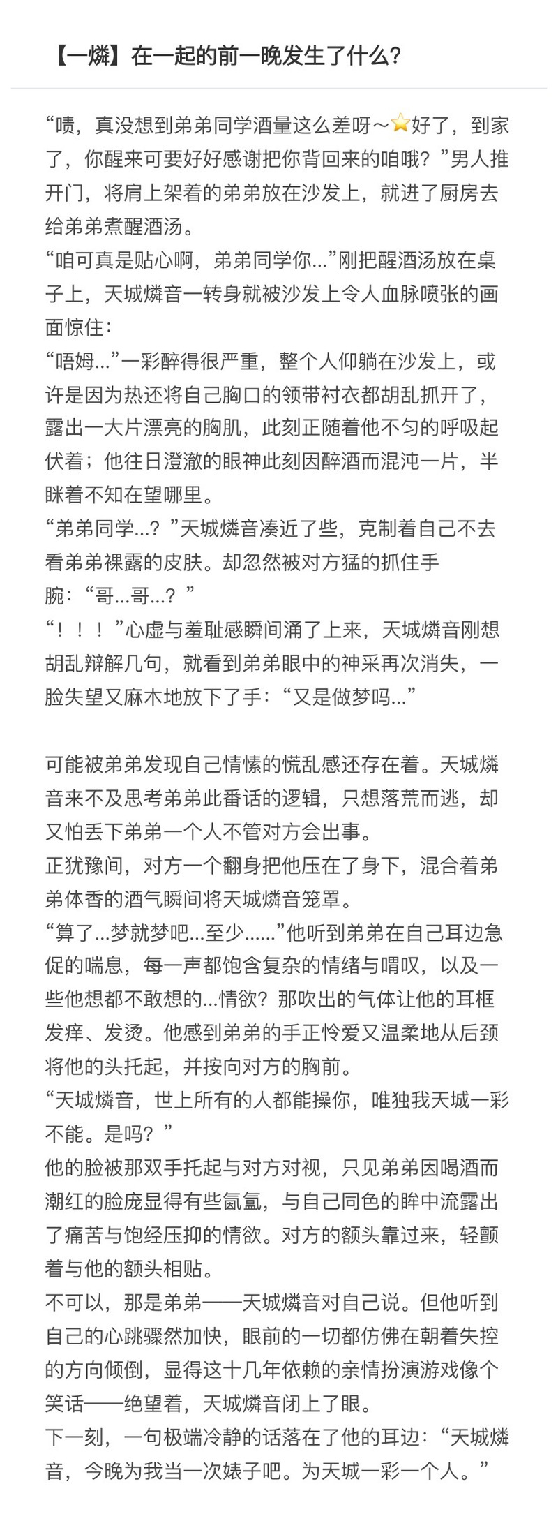 XiaoqingHRbot☆quiet followDOODLE #R18 #一燐微微肉一燐 在一起的前一晚发生了什么 Tap to full screen (size:828x2256).Repost is prohibited Let's send reactions! freqpopularsnackothersPayment processing Replies from the creator Follow creator you care about!☆quiet follow XiaoqingHRbotDOODLE燐打乳钉,一彩angry sex,窒息要素因为现在主线的发展兄弟二人已经结束了“他逃他追”的状态进入了新的更加坦荡稳定的关系,所以才敢尝试探索了一彩angry sex。 4771 XiaoqingHRbotDOODLE1给0口,1给0扩张,草袅这一篇尝试着给两个人都赋予了“主动”的成分。过去一彩在这段关系里往往扮演一个主动的追逐者,但同时,他也是一个情商并不低的少年,必定会受到些青春期由爱恋带来的甜蜜痛苦。为了避免将一彩的塑造刻板脸谱化,在这一篇中我要求燐音去成为那个说“爱”的一方。我不确定一彩会不会不安,但我相信如果有人能让他不安的话,天城燐音会是第一个。 7969 XiaoqingHRbotDONE一燐七夕24h贺文【一燐】心跳?!突击的偶像日常 21 XiaoqingHRbotDOODLE警官彩x黑道燐,R18,女仆装,艹袅,博弈写这篇的初衷,是希望看到在与哥哥的博弈中,一彩靠自己的判断占得上风赢一次~ 8424 XiaoqingHRbotDOODLE #一燐最近一直在写论文没什么时间写故事先请大家看点画吧 7 XiaoqingHRbotDOODLE #一燐 related works あかぐまCAN’T MAKE一燐とニキ燐の仲良く3p見たいねʕ´•ﻌ•`ʔ描けない……見たいね…誰か描いてください…꜀(.௰. ꜆)꜄꜀(.௰. ꜆)꜄ Jjoyce153421INFO偶像夢幻祭 - 一燐天城一彩&天城燐音神明的祝福 12879 Jjoyce153421INFO偶像夢幻祭 - 一燐天城一彩&天城燐音戒哥哥 6854 LiTaPAST女装あり 13 ttttttomatoDOODLEモブ燐と一燐 3 ttttttomatoDOODLE一燐ふぇ 2 Jjoyce153421INFO偶像夢幻祭 - 一燐天城一彩&天城燐音弟弟君,今天哪都不能去喔!! 1910 nyamouo_ESDOODLE一燐히이린히이로가 너무 벗고 있어서... 별건 없음 yuruoqianDOODLE中元限定小狐妖11吃哥哥 2
