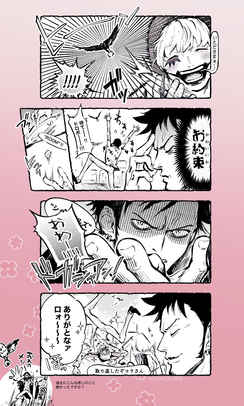 ドフ鰐、ダズ鰐、鰐受、ローコラ、ロコラロ、コラロ、ロ右腕if、ドフコラ、コラドフ、ドフ受、ルチスパ、ゾロサン、サンゾロ、キドキラ、キラキド…もう何もかんも好きなので困りました