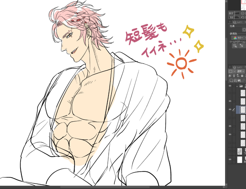 アポ神の長い伸びる髪は別レイヤーに描くのですが、それが無いVerも中々良いじゃない…と思って、供養の意味も込めてここに上げておく~