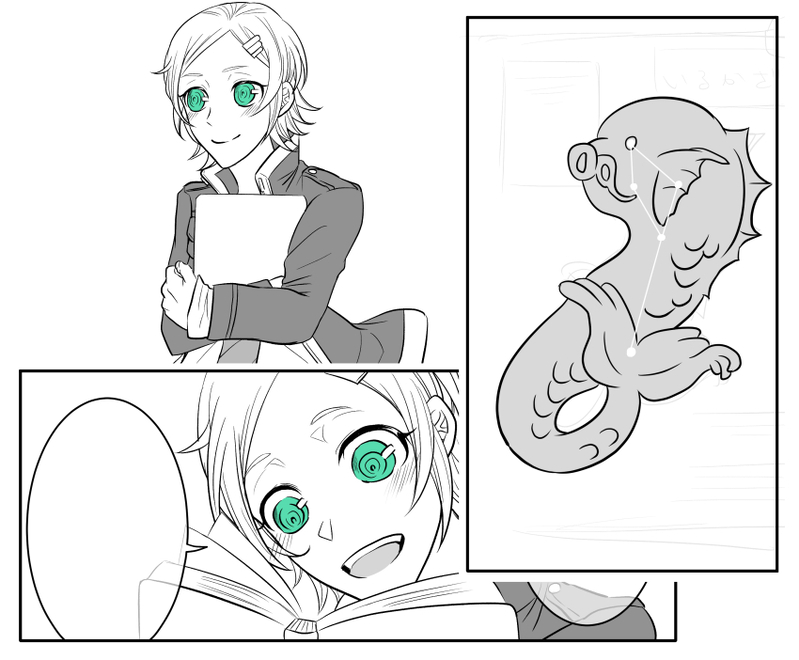 ポセアム邂逅編オマケ漫画進捗。七夕にちなんで(?)いるか座も描いておきました~