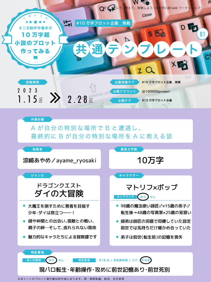 テンプレートは「二次創作字書きが10万字超小説のプロット作ってみる」様提供