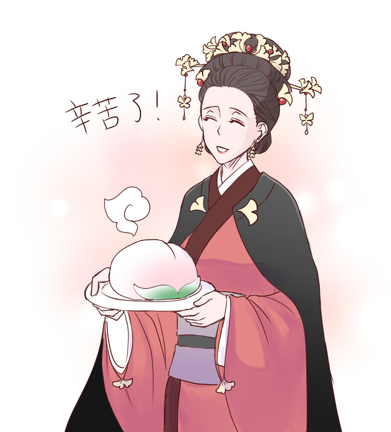 めずらしくマダム董。かんざしめっちゃ大変!お皿のはミニももまんが入った子宝ももまん。