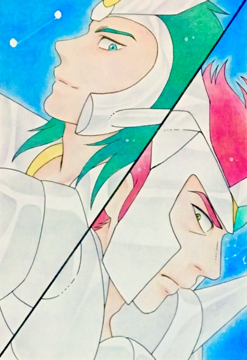 危なく遅刻するとこでしたが、何とかギリギリ誕生日内の投稿となりました。ケンタウルス星座のバベルと、猟犬星座のアステリオンの生誕記念イラストです。双子でもないのに、同じ漫画で同じ誕生日ってあるんですね、驚きましたwあ、気付けば白銀聖闘士初描き。何はともあれ、バベルとアステリオンおめでとう!