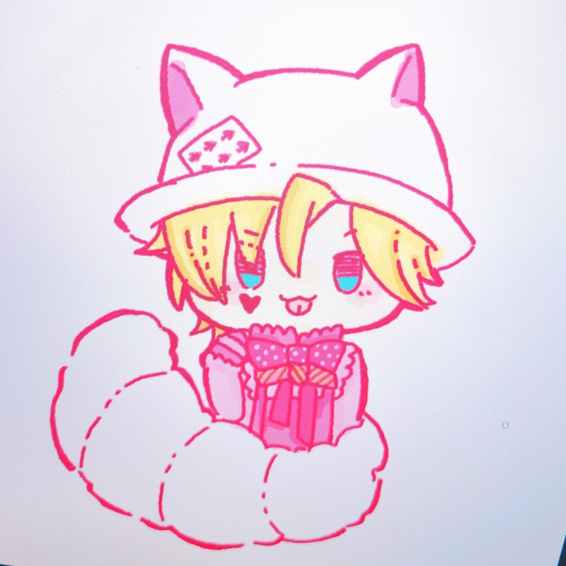 みみ(帽子)としっぽまだ塗ってないから白猫になってる🐱♠