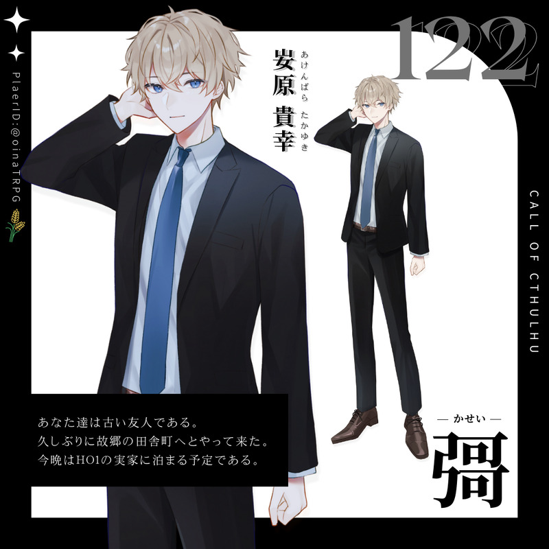 oinaTRPG☆quiet followDOODLE◇ 彁(かせい)𝗣𝗖┊𡚴原 貴幸(あけんばら たかゆき) #ディスプレイ display Tap to full screen (size:1080x1080).Repost is prohibited Let's send reactions! freqpopularsnackothersPayment processing Replies from the creator Follow creator you care about!☆quiet follow oinaTRPGDOODLE𝗖𝗼𝗖『よもすがらゴーストライト』 𝗞𝗣𝗖:レオ / よふかし𝗣𝗖:待宵 月藍 / おいな║𝗘𝗡𝗗 𝟭-𝗔「ゴー、ストレイト」 oinaTRPGDOODLE※2枚目は変葬のネタバレも含むためワンクッション𝗘𝗺𝗼-𝗸𝗹𝗼𝗿𝗲 𝗧𝗥𝗣𝗚『変葬』𝗗𝗣𝗖/𝗗𝗟 : 速水 界理 / よふかし𝗣𝗖/𝗣𝗟 : 亜座間 テレサ / おいな║𝗦𝗖𝗘𝗡𝗔𝗥𝗜𝗢-𝗖𝗟𝗘𝗔𝗥 2 oinaTRPGDOODLE◆エモクロアTRPG『 変葬 』▽旅館の捕食者HO3 医療従事者 - 継続┊亜座間テレサ 2 oinaTRPGDOODLE𝗖𝗼𝗖『虚構水銀注射 - Mercurius Injection - 』𝗞𝗣:みっこ𝗣𝗖/𝗣𝗟:閼伽縫 恭弥 / おいな║𝗘𝗡𝗗-𝗕 oinaTRPGDOODLE◆虚構水銀注射 -Mercurius Injection-𝗣𝗖┊閼伽縫 恭弥 (あかぬい きょうや) oinaTRPGDOODLE◆ 異界探偵の奇怪なる事件簿𝗣𝗖┊霞森 宵(かすみもり よい) related works Ms.missDONEBrave.Blood.BattleHO2 Lamb・Magnitude・Lullaby(ラム・マグニチュード・ララバイ)Age12 Ms.missDONEVOIDHO2 蘭(らん)ディスプレイ素材:Y/O(@yn0designn) (敬称略) OktAokoDONERecollection Masquerade HO2 黒の宝石 / アッシュ(灰崎 ロイド)自陣以外〇、自陣✖(!?) 3 Ms.missDONEようこそ!迷冥市役所都市伝説課へ!HO2 嘘鳥(うそどり) 厘太郎 / リンタロDOODLEリンタロ卓【2024年】TRPG自PC立ち絵ディスプレイ一覧ディスプレイない子はスクショ***今年もありがとうございました! 22 グライDONEインセイン「ムラサキカガミ」に参加したPCのディスプレイです。 C__MAKIwDONE▎𝗖𝗼𝗖 𝟲𝘁𝗵激情⚀ 𝗣𝗖 - 假屋 三樹( かりや みき )⚁ 𝗜𝗮 𝗰𝗵𝗮𝗿𝗮https://iachara.com/view/10064262⚂⚃⚄⚅ ➤➤ numenumera_teDONE 4 ritu_cookieDONEクトゥフル神話TRPG【逢魔ガ斬首】のディスプレイ~HO2直感:巴波 瀬那(ウズマ セナ) recommended works Eden(SFG_RA)DONE鳴無旋!新しい立ち絵よー! nap_p6TRAINING18歳以上ですか?(y/n)※義が非処女 ミタコンドリアDONE獣のディーヴァのガルさん立ち絵 (かいぶつたちとマホラカルトHO1 狼) 8 oinaTRPGDONECoC「今夜バスタブで愛を囁く」KPC/PL:天司 ライト(おいな)PC/PL:日暮 泥深(よふかし)お風呂に入ってSAN値回復してきました!恋人になってからイチャイチャ度1000倍でもうPL置いてかれてるんじゃないですかね?CONがデロデロになるって表現初めて使った。その後映画見たりご飯食べたり恋人とまったり出来て楽しかったです!ありがとうございました! nagonago_lodiDONENapFrappe 自陣ディスプレイ 2 nagonago_lodiSPOILER同居人ディスプレイ 2枚目は現行未通過✖ 2 黒川ライDONECoC『レプリカントの葬列』自陣 私服差分相方の私服立ち絵も描かせていただきました。(ネタバレはない) 3 はむたまDOODLEあなたが知っていること 知らないこと2024/7/7開催のアナザートランスフォーメーションの展示漫画です。トランスフォーマーアドベンチャーのサイドスワイプとバンブルビーのお話です。少しオプティマスも…全部知ることはできないけど、知っていることが増えたらうれしい…そんなお話です!読みに来てくれてありがとうございます…! 8 thelostwandererDONEDm me if you want the password. Nyo Italy ;3 2