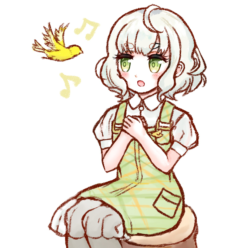 エアスケブご依頼ありがとうございました! 太眉ふわふわ白髪ちゃんだ!と頂いた時大喜びでした。お洋服もとても可愛かったり楽器を持っている姿が印象的だったり、描きたい要素が多くて幸福にも構図に迷ってしまいましたね……! 描かせて頂き感謝です~!!